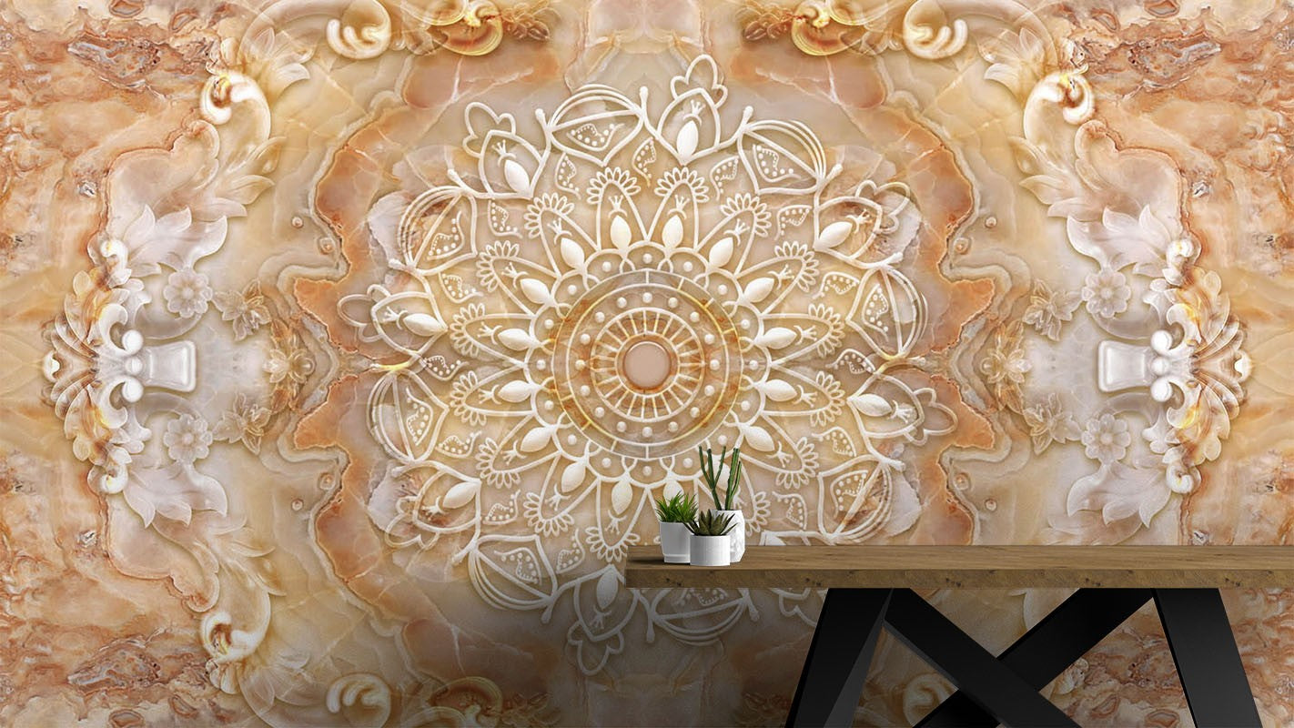 Floral Relif Texture Patterns Gold Wallpaper Mural