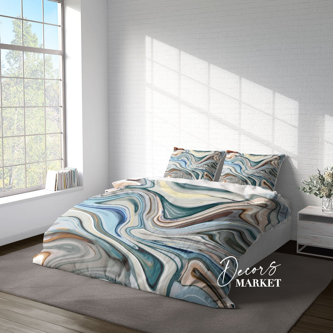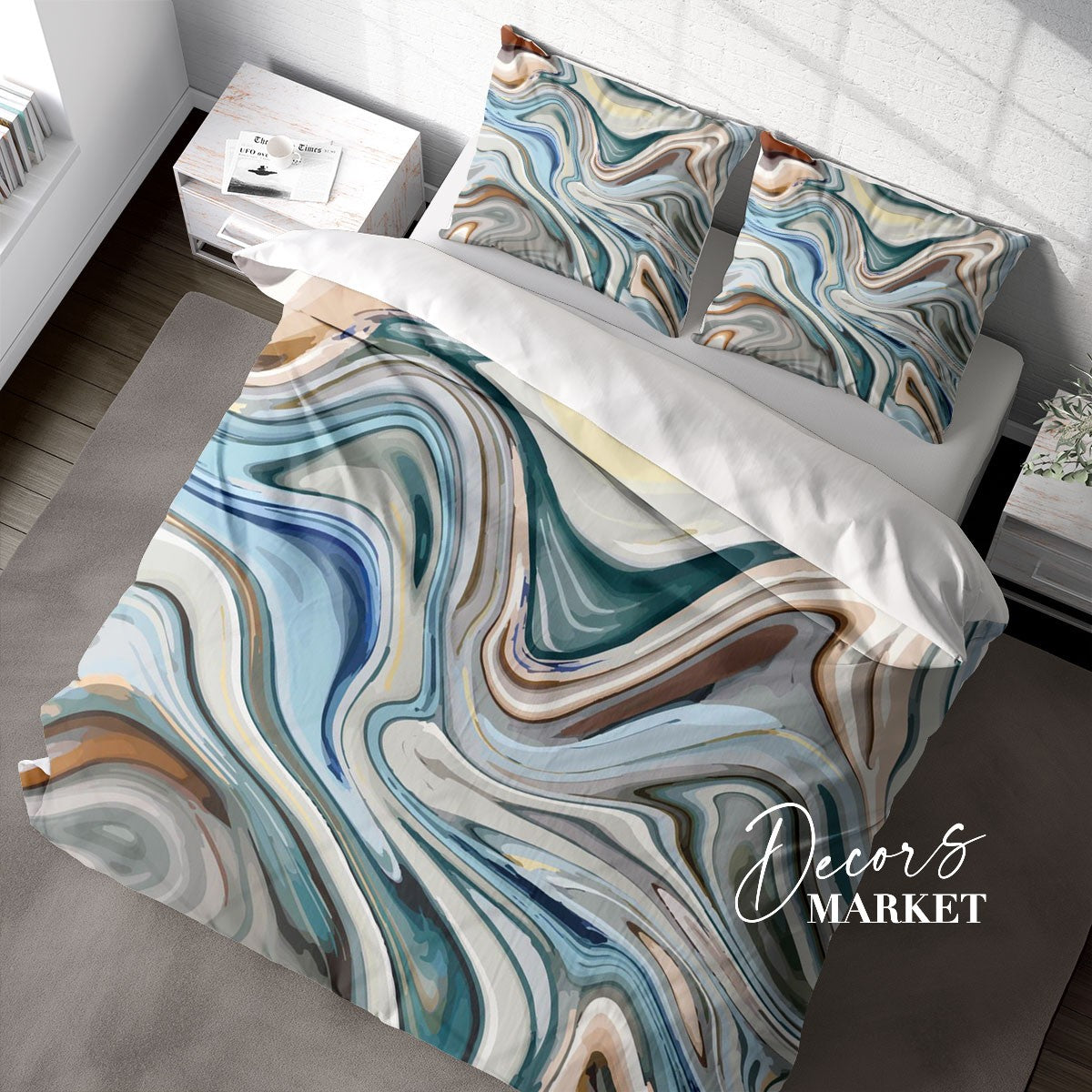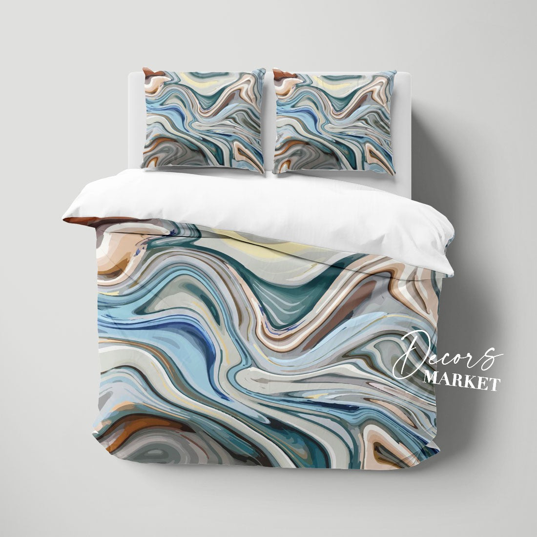 Flow Blue Duvet Cover Set w Pillowcases, Gray Texture Marble 3D Quilt Cover, 3pc Single Double Queen King Size Doona Cover