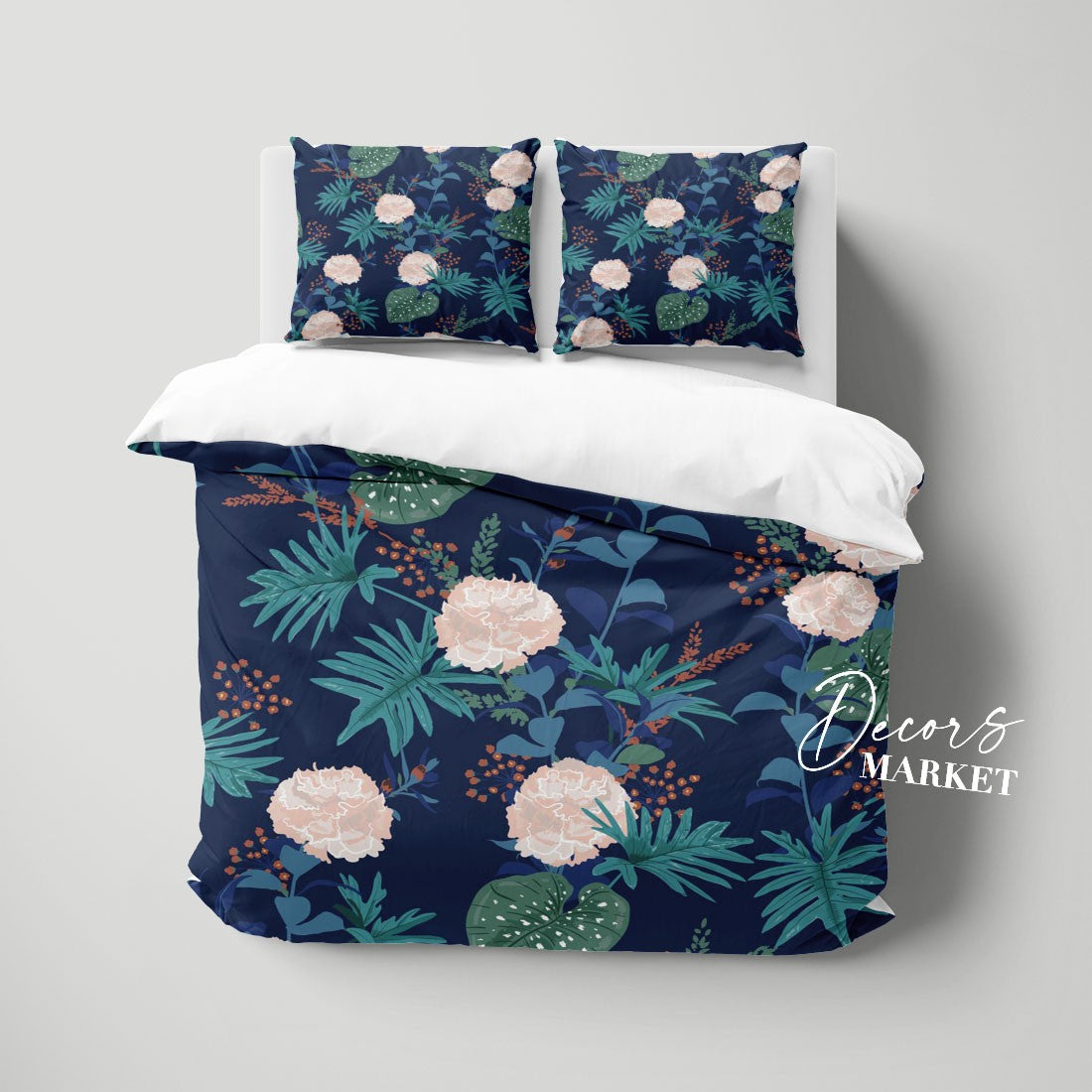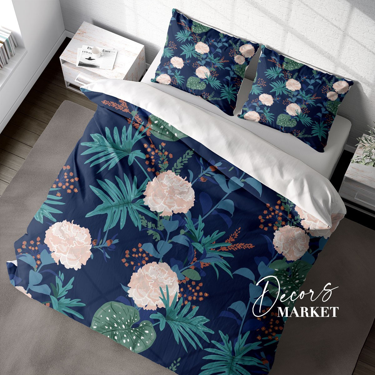 Flower And Branches Duvet Cover Set w Pillowcases, Blue Floral Flowers 3D Quilt Cover, 3pc Single Double Queen King Size Doona Cover