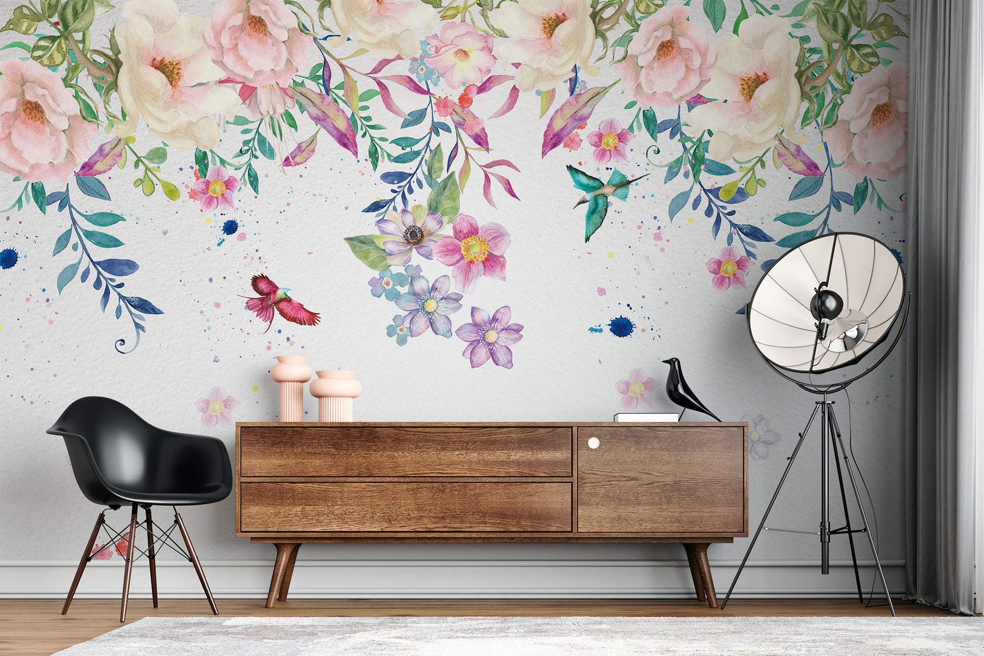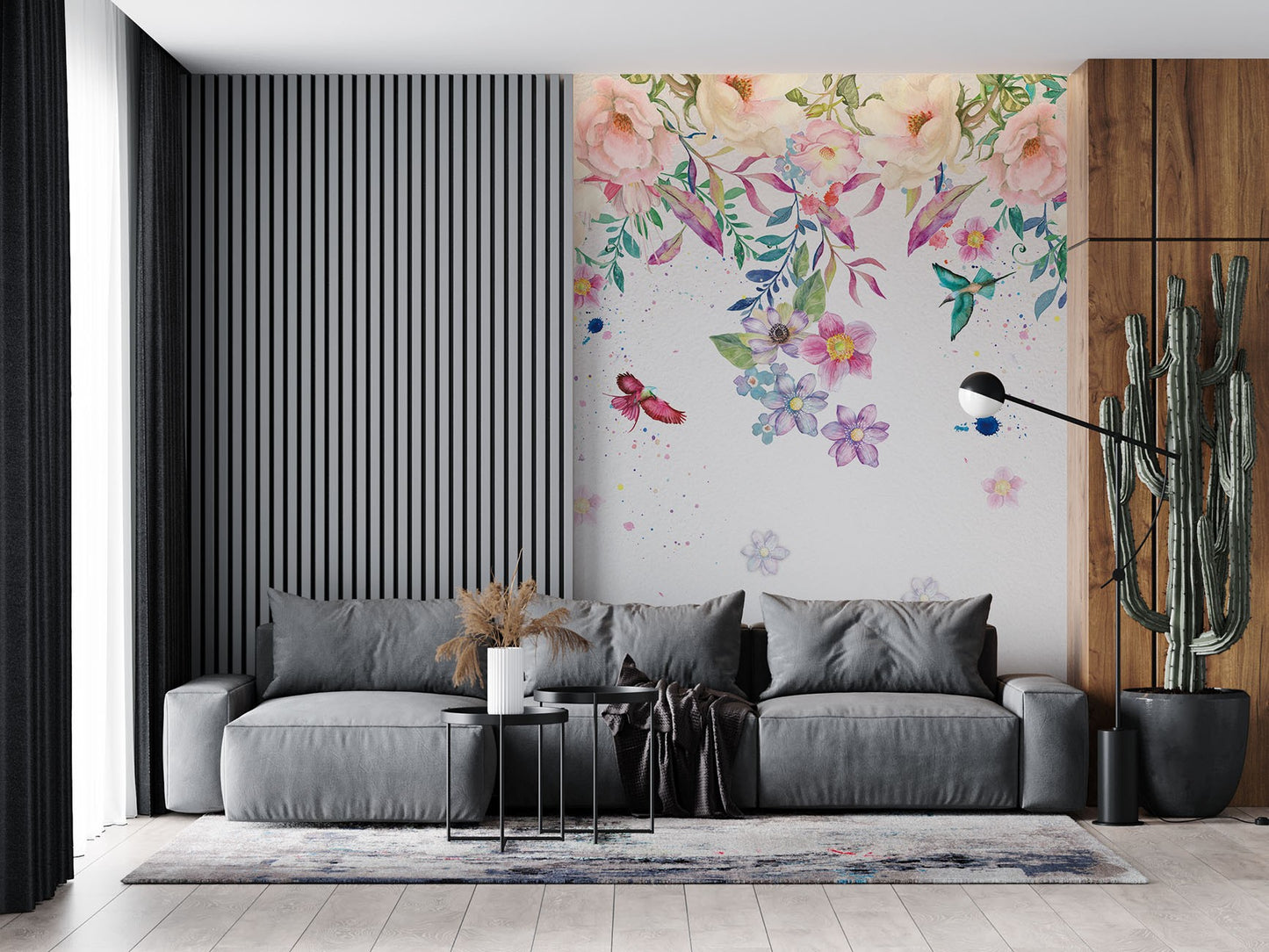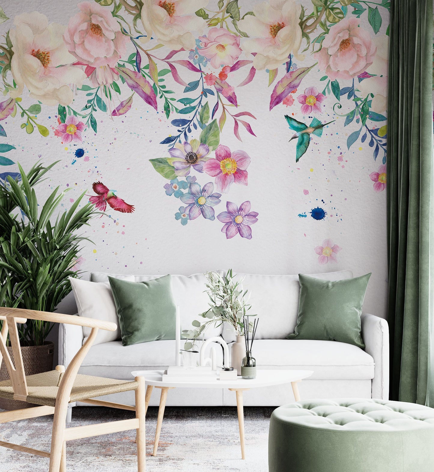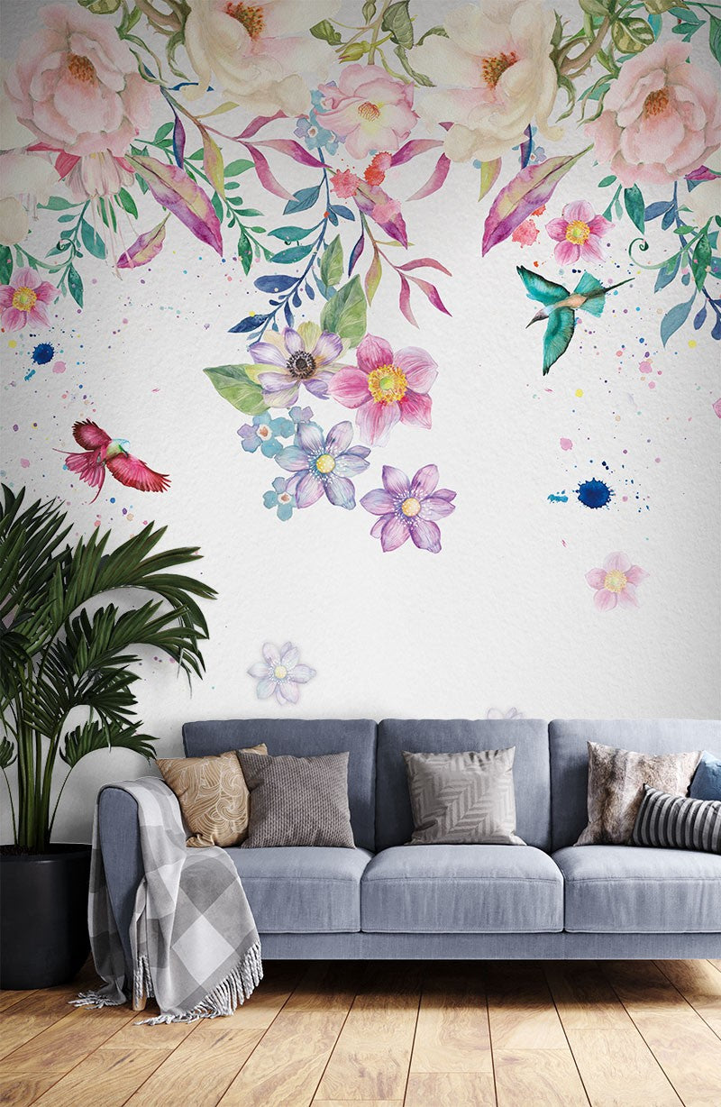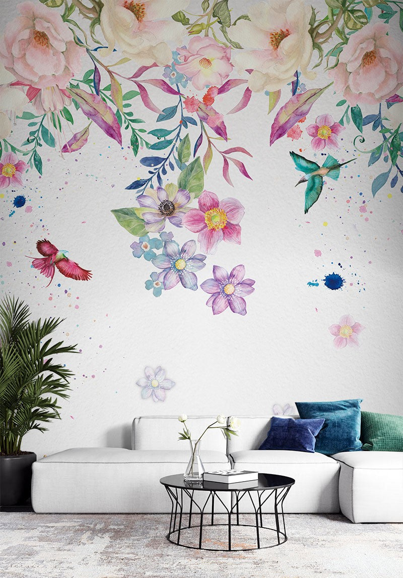 Flower Bird Kids Colorful Colorful Wallpaper Mural