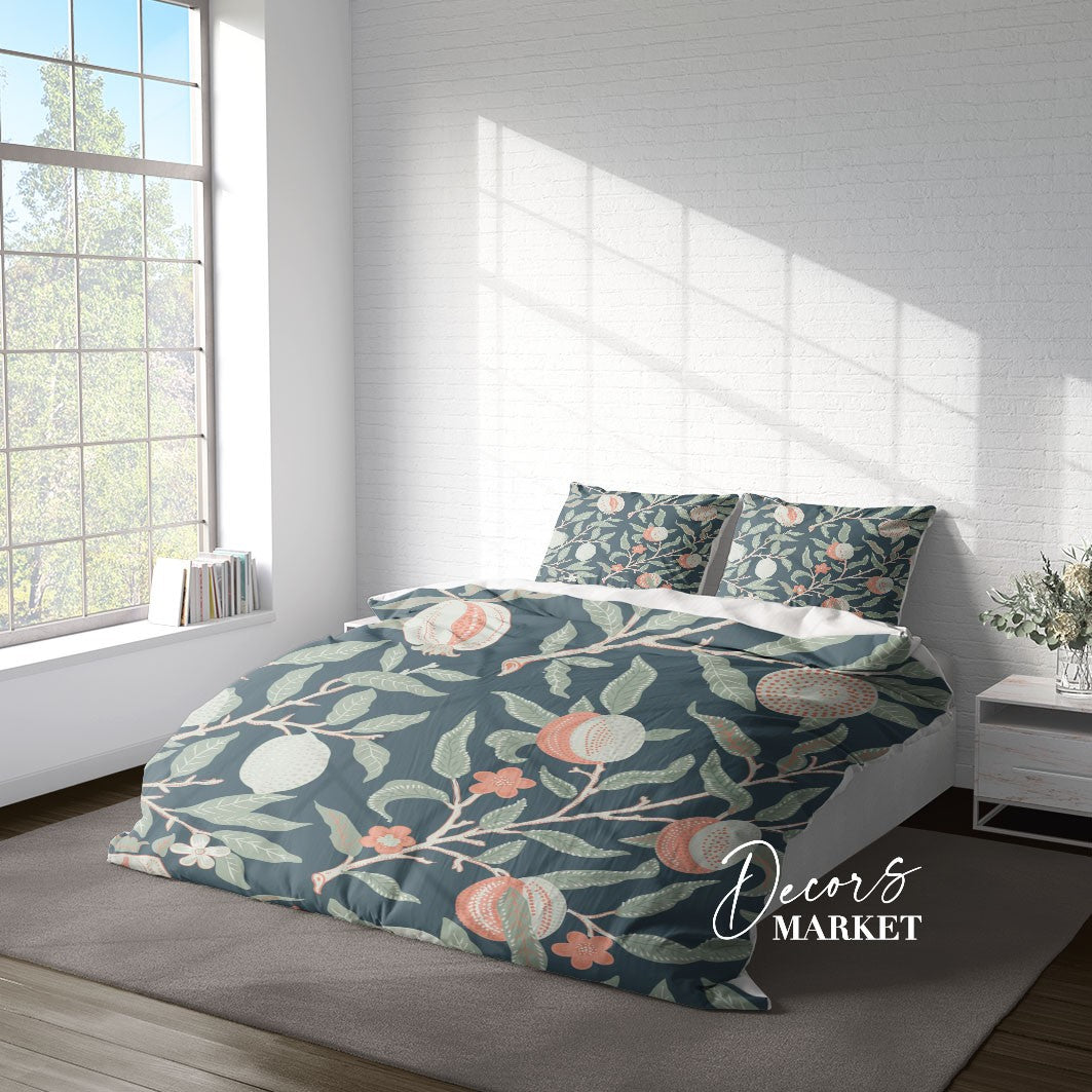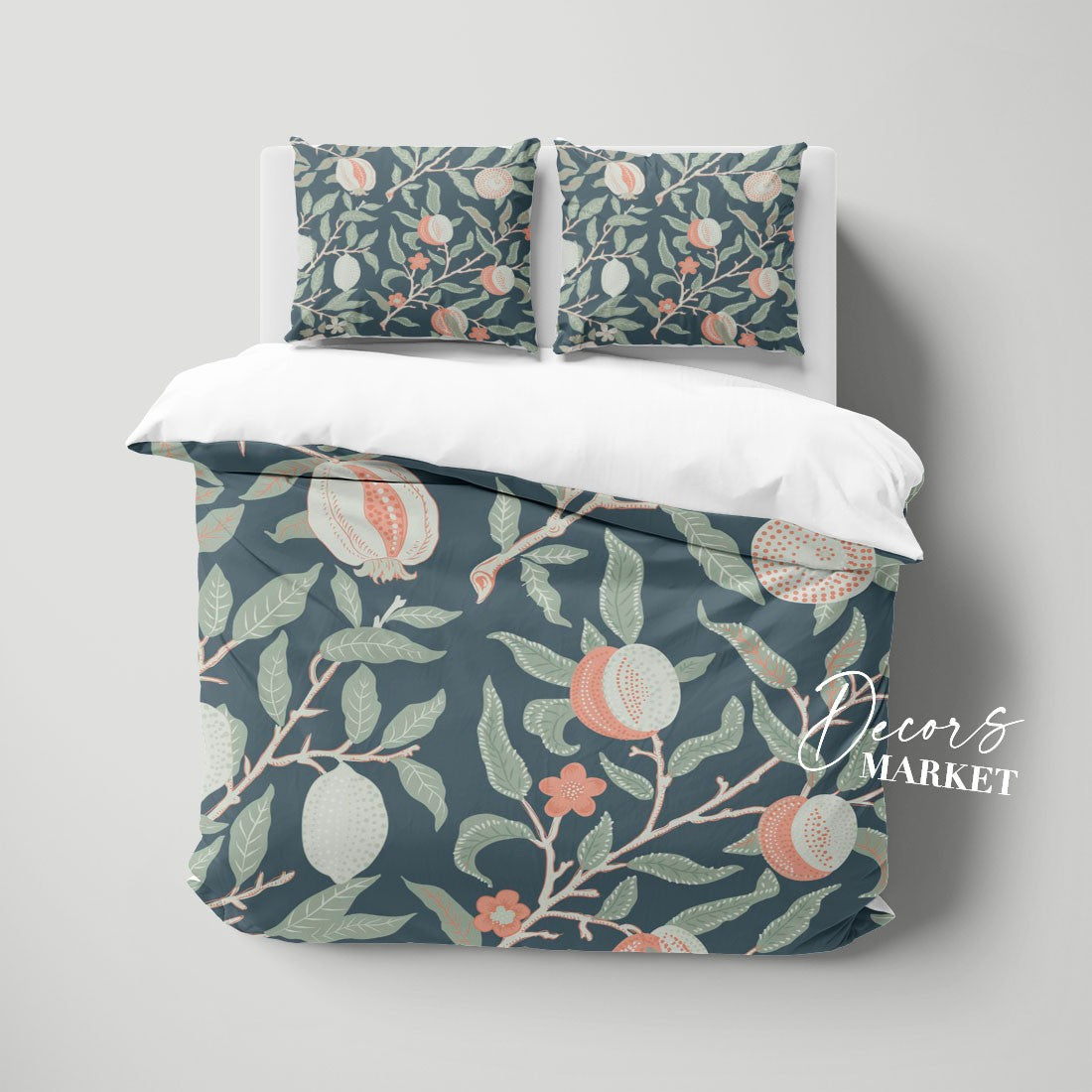 Flower Fruit Duvet Cover Set w Pillowcases, Green Floral Patterns 3D Quilt Cover, 3pc Single Double Queen King Size Doona Cover