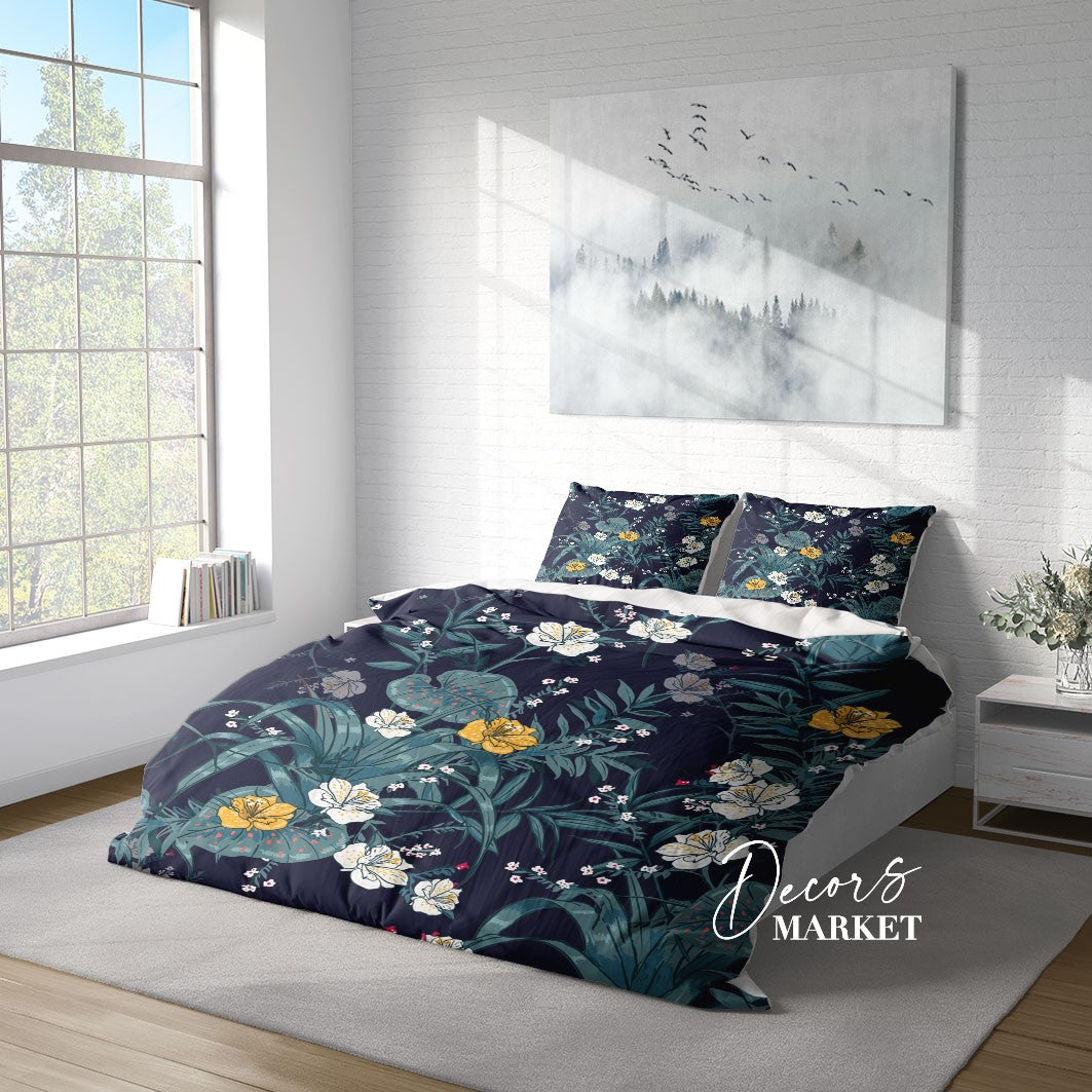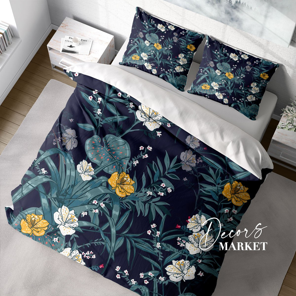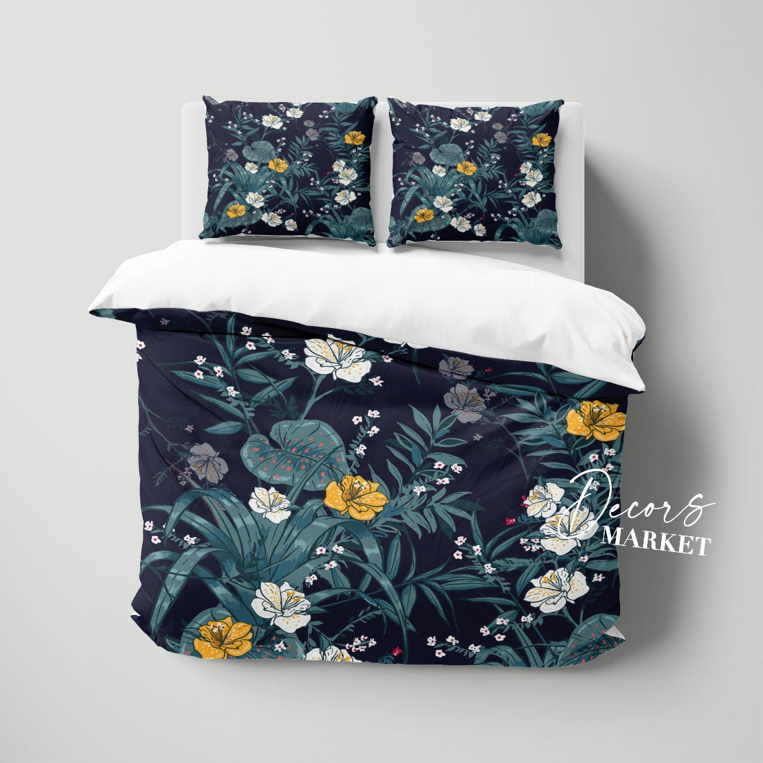 Flower at night Leafy Duvet Cover Set w Pillowcases, Blue Floral Patterns 3D Quilt Cover, 3pc Single Double Queen King Size Doona Cover