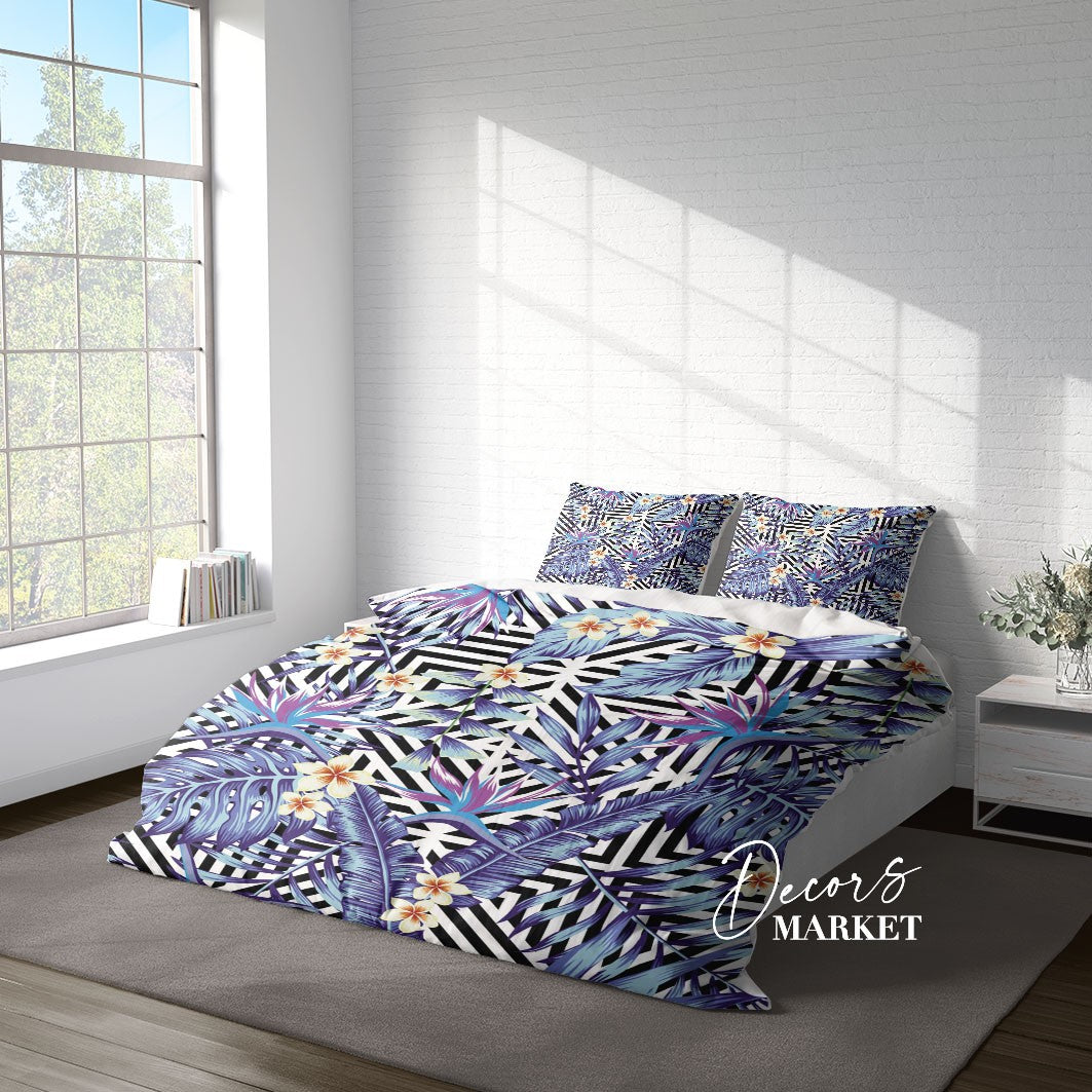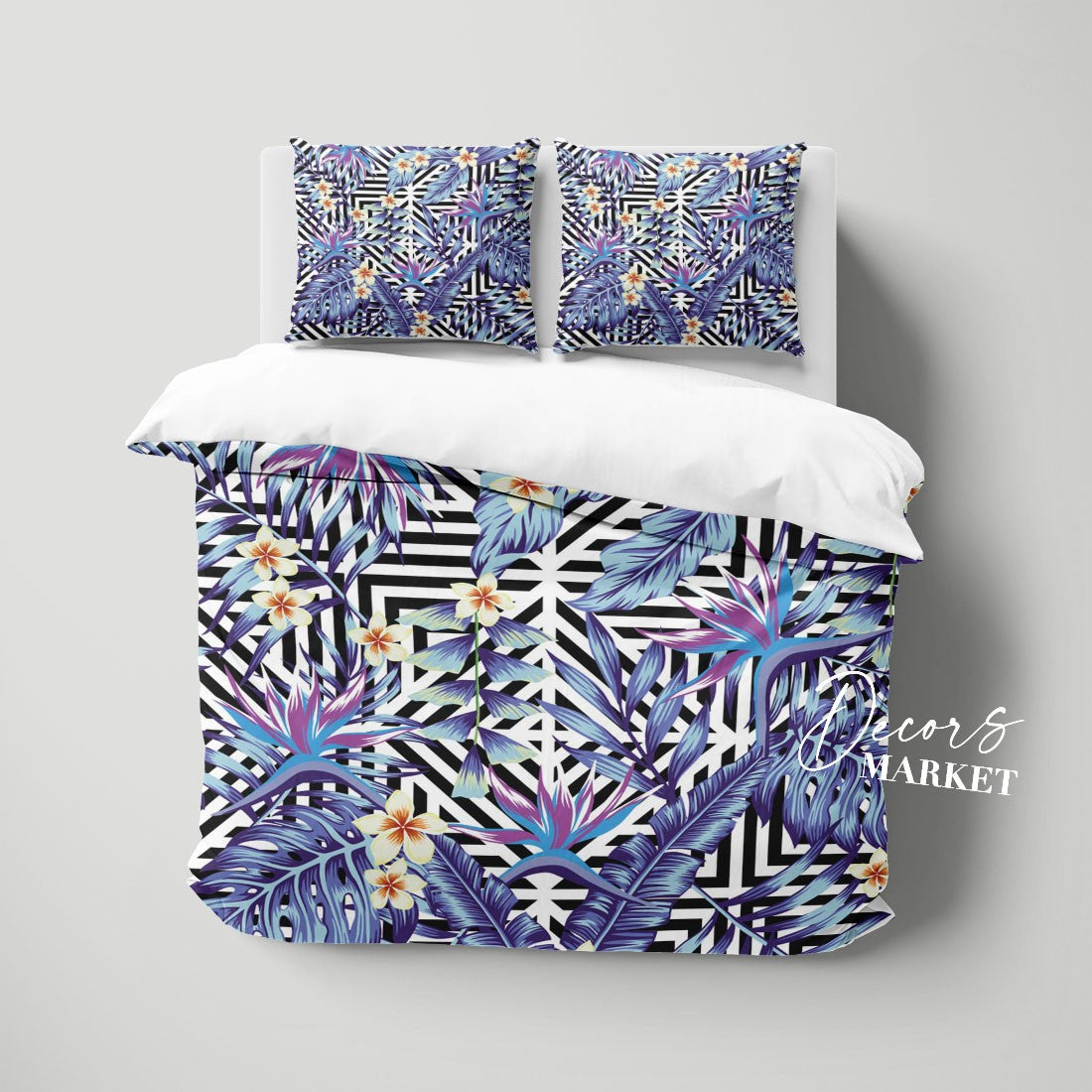 Flower Leaves Duvet Cover Set w Pillowcases, Purple Art Fantasy 3D Quilt Cover, 3pc Single Double Queen King Size Doona Cover