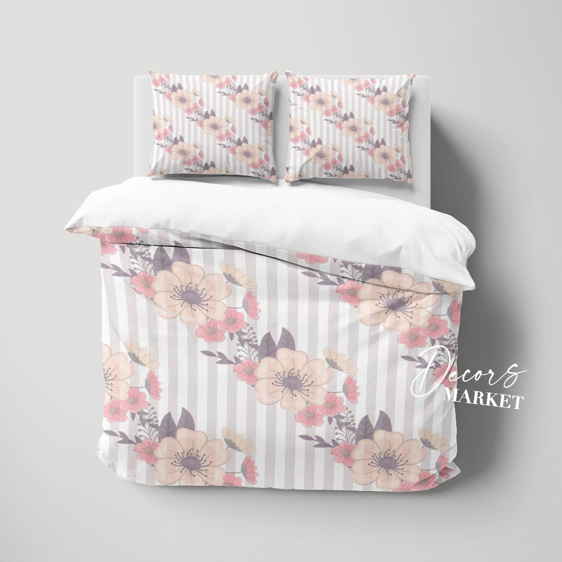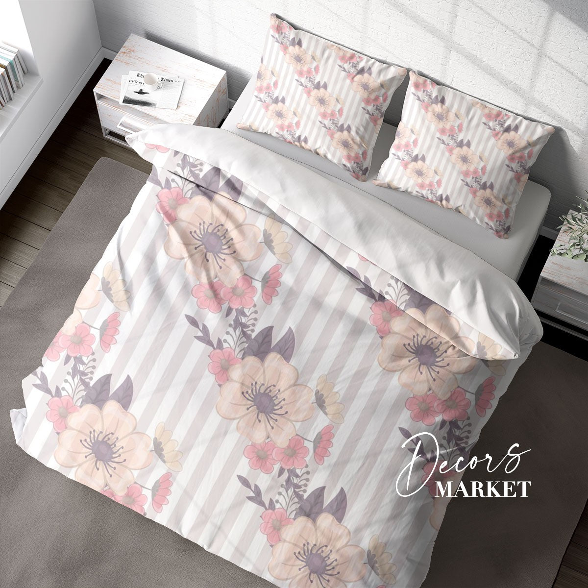Flower Vertical Lines Duvet Cover Set w Pillowcases, Colorful Floral Flowers 3D Quilt Cover, 3pc Single Double Queen King Size Doona Cover