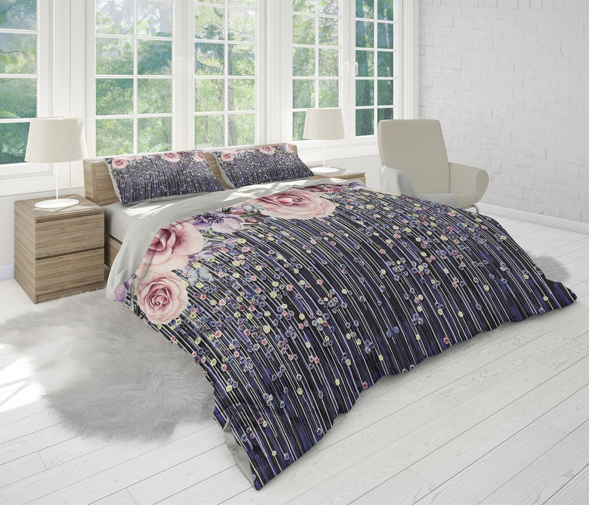 Flowers Floral Multicolour 3D Duvet Cover Set W Pillow Cover, Single Double Queen King Size, Printed Cotton Quilt Doona Cover 3 Pcs