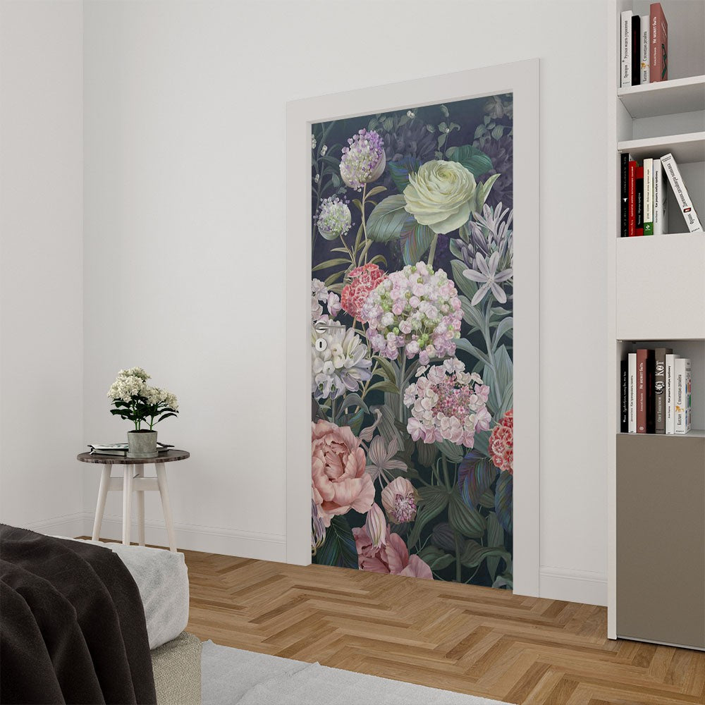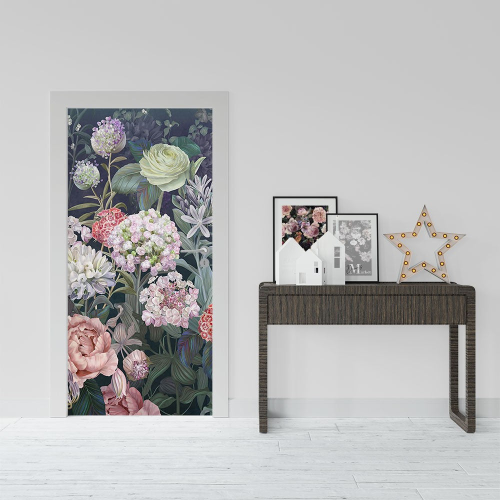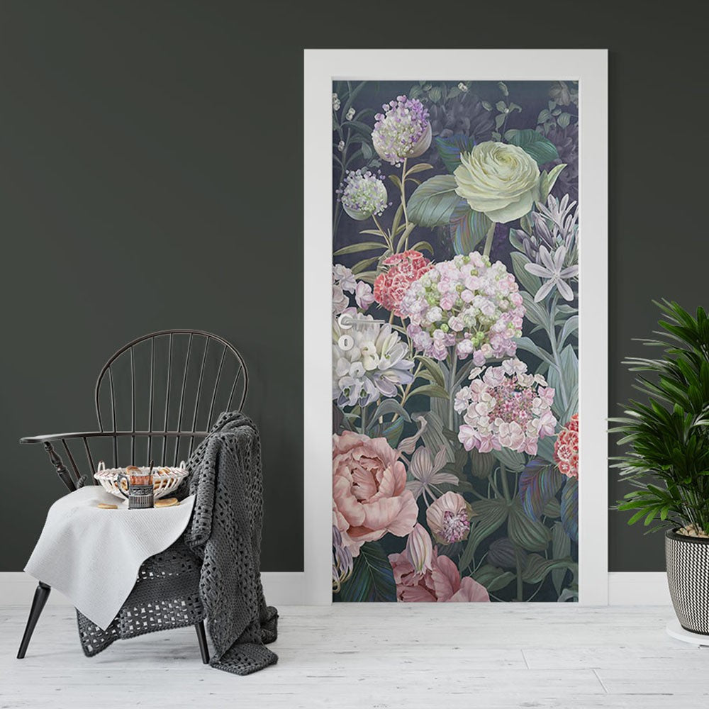 Flowers Floral Flowers Door Wrap, Customized Mural For Door, Door Mural Sticker, Peel And Stick Door Cover, Removable Door Decal