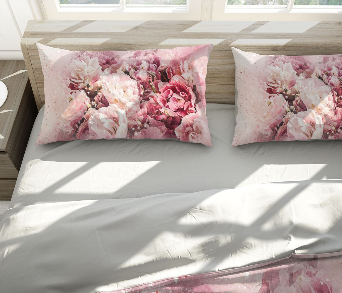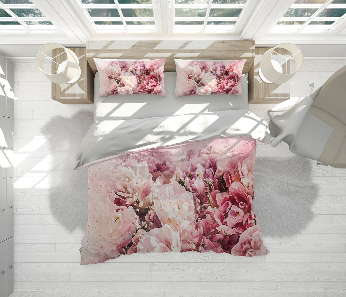 Flowers Floral Pink 3D Duvet Cover Set W Pillow Cover, Single Double Queen King Size, Printed Cotton Quilt Doona Cover 3 Pcs