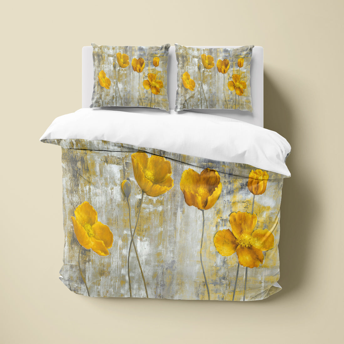 Flowers Painting Floral Yellow 3D Duvet Cover Set W Pillow Cover, Single Double Queen King Size, Printed Cotton Quilt Doona Cover 3 Pcs