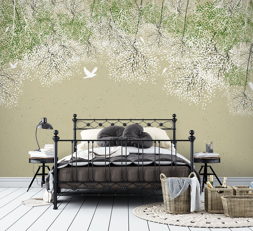 Forest Blossom Floral Leaves Green Wallpaper Mural,Self-Adhesive Peel And Stick 3D Wall Art,Australian Company Bedroom Wall Decor