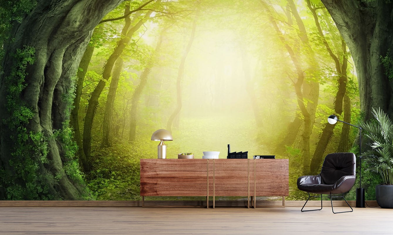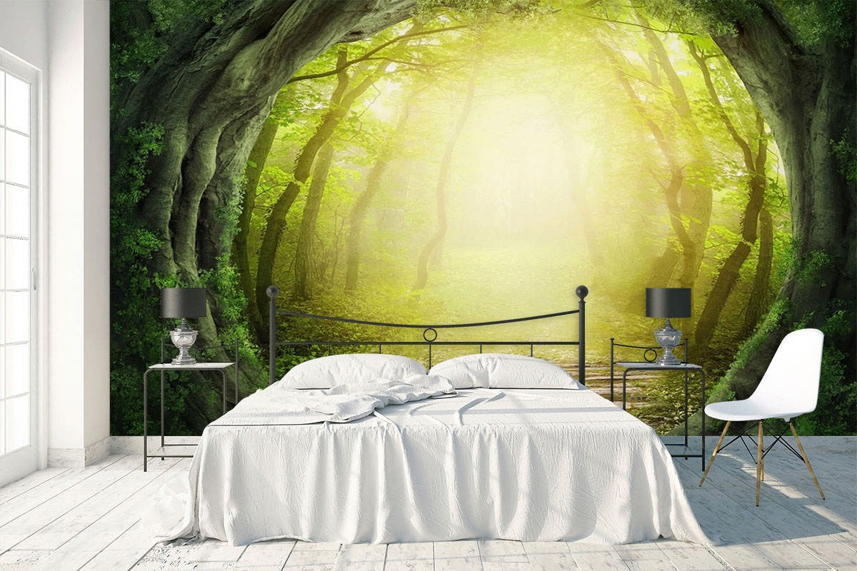 Forest Fujiman Nature Caves Green Wallpaper Mural,Self-Adhesive Peel And Stick 3D Wall Mural,Removable Australian Company Wall Decor