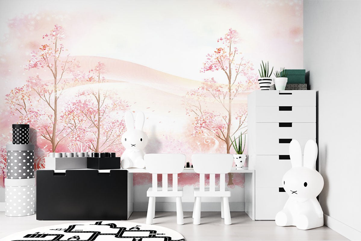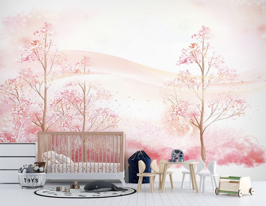 Forest Landscape Kids Colorful Pink Wallpaper Mural,Self-Adhesive Peel And Stick 3D Wall Art,Australian Company Bedroom Wall Decor