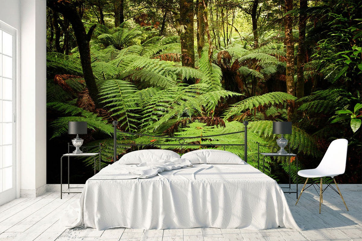Forest Leaves Jungle Green Wallpaper Mural,Self-Adhesive Peel And Stick 3D Wall Mural,Removable Bedroom Wall Decor