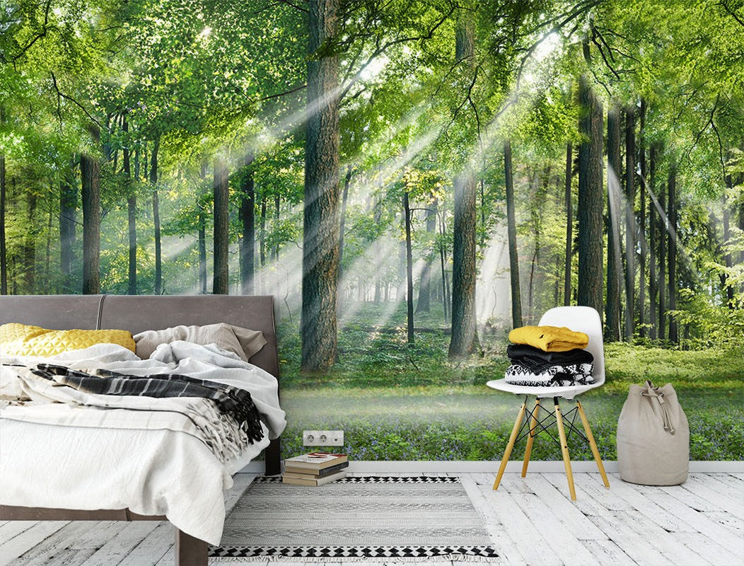 Forest Light Green Wallpaper Mural,Self-Adhesive Peel And Stick 3D Wall Mural,Australian Company Bedroom Wall Decor