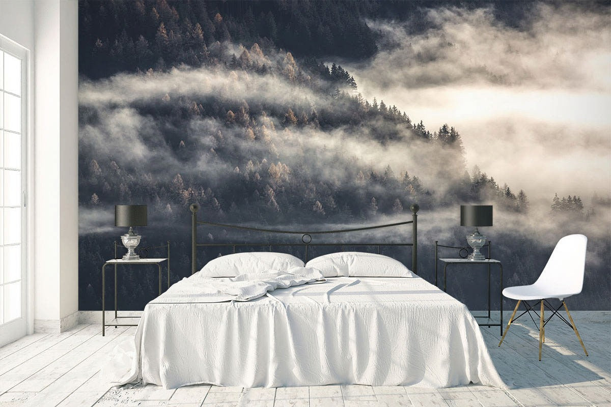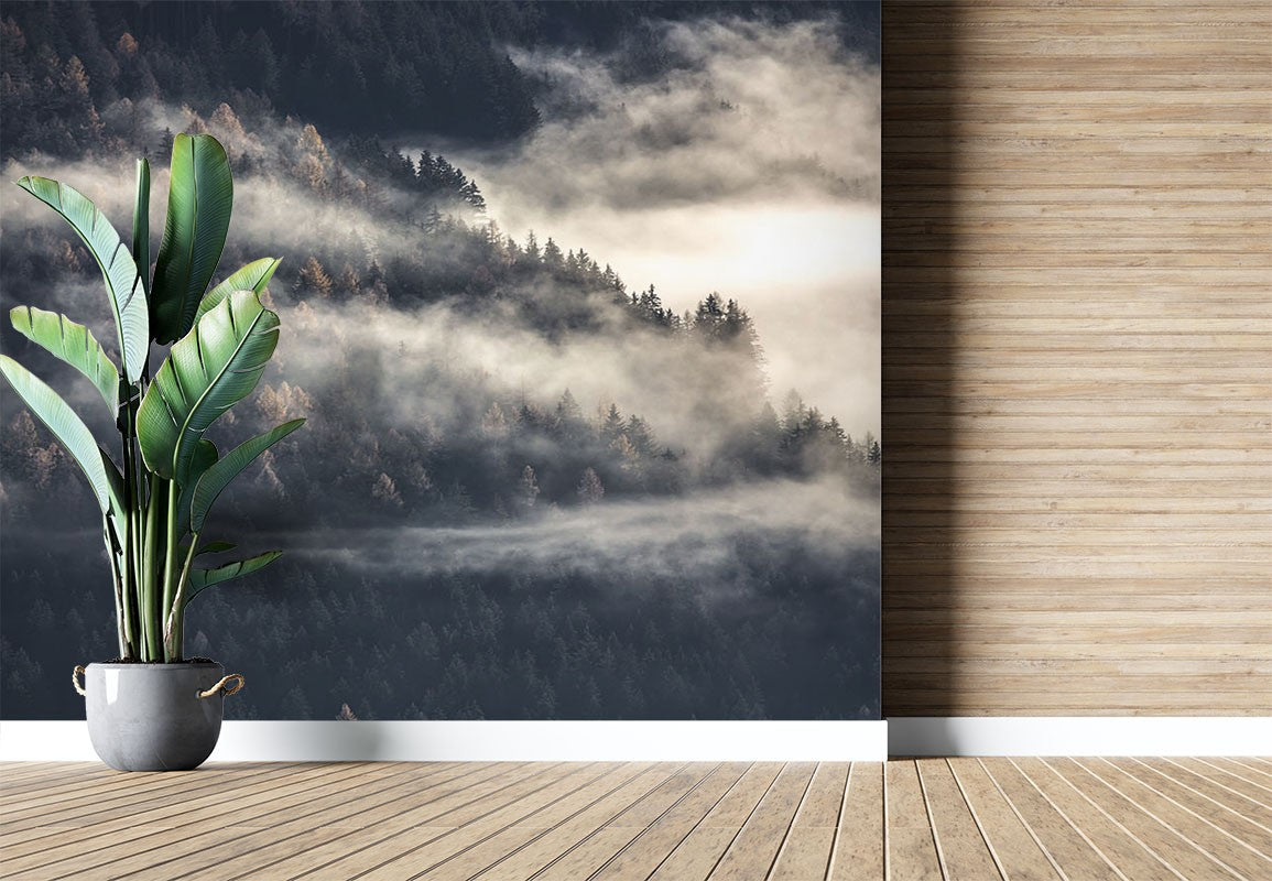 Forest Mountain Black Wallpaper Mural,Self-Adhesive Peel And Stick 3D Wall Decor,Australian Company Removable Wall Decor