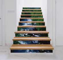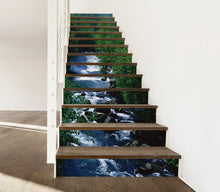 Forest River Nature Waterfall Green Stair Riser Decals, Waterproof Removable Staircase Decals, Vinyl Peel And Stick Stairs Decal Stickers