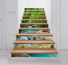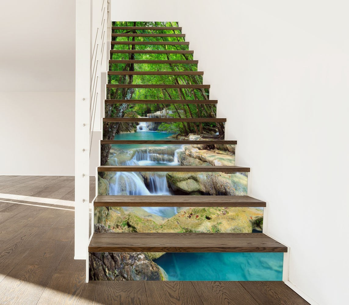 Forest River Nature Waterfall Green Stair Riser Decals, Waterproof Removable Staircase Decals, Vinyl Peel And Stick Stairs Decal Stickers