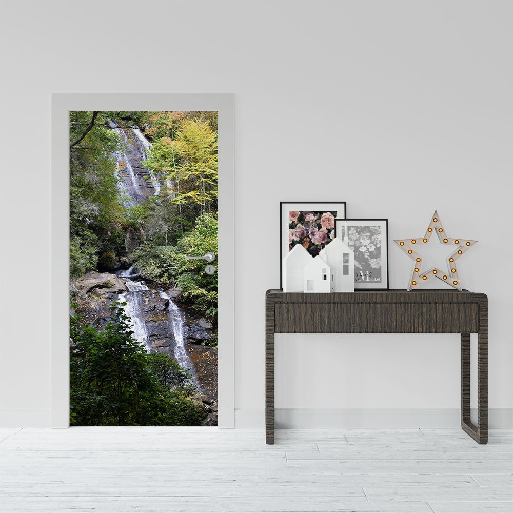 Forest Rock Nature Waterfall Door Wrap, Customized Mural For Door, Door Mural Sticker, Peel And Stick Door Cover, Removable Door Decal