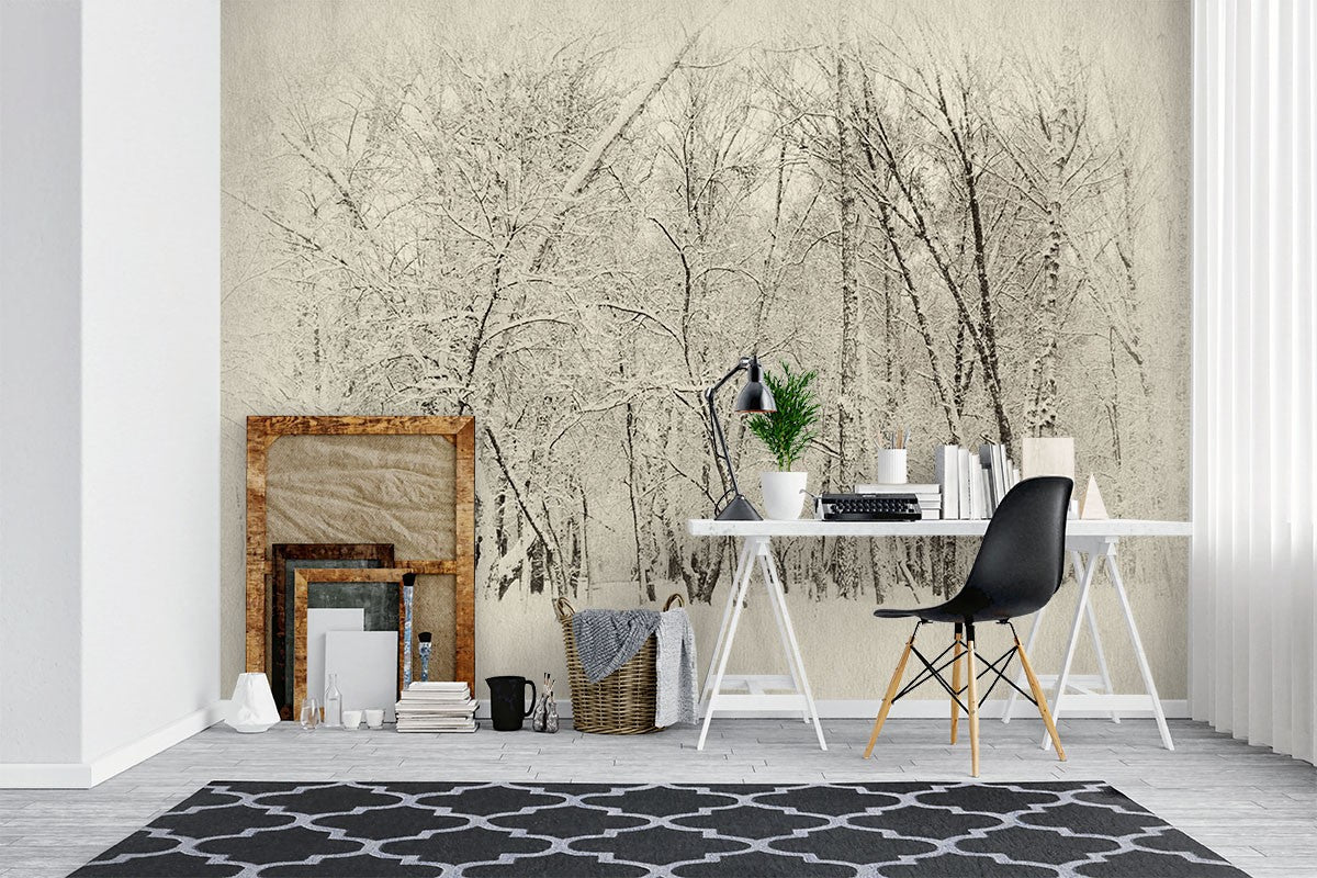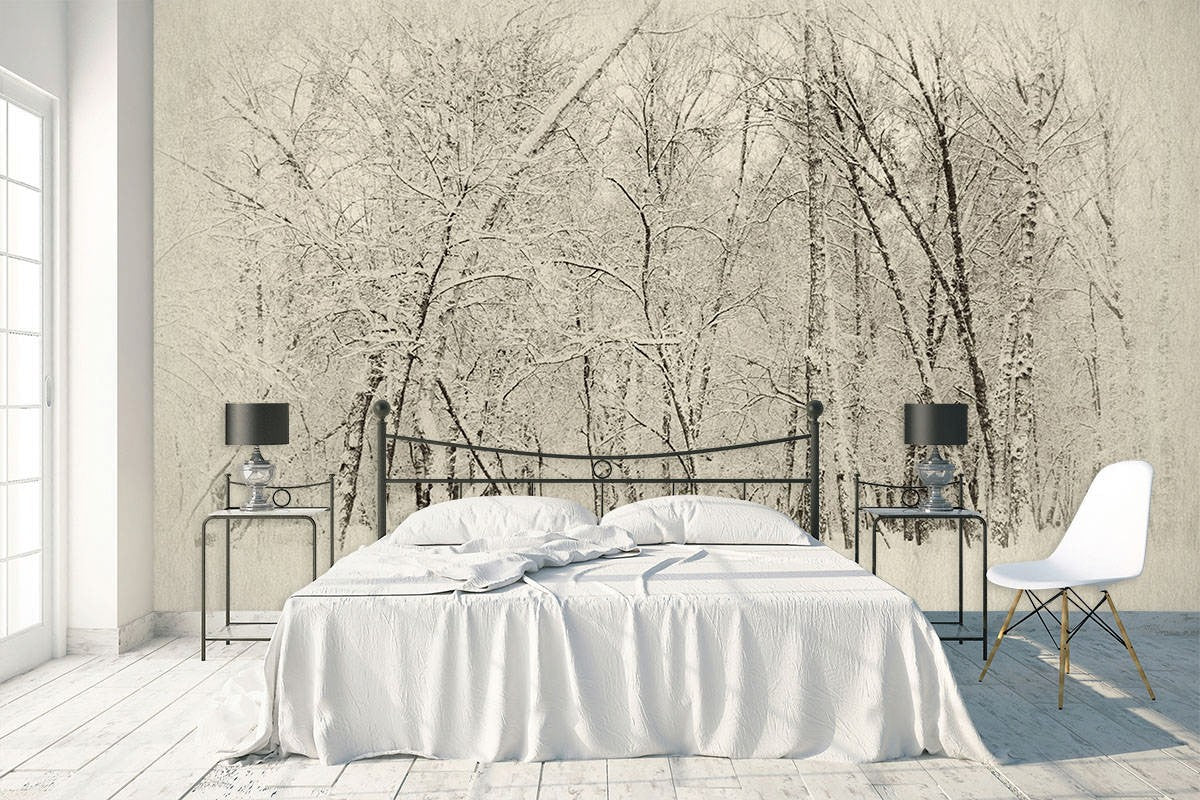 Forest Snow Floral Leaves Gray Wallpaper Mural,Self-Adhesive Peel And Stick 3D Wall Art,Bedroom Removable Wall Decor