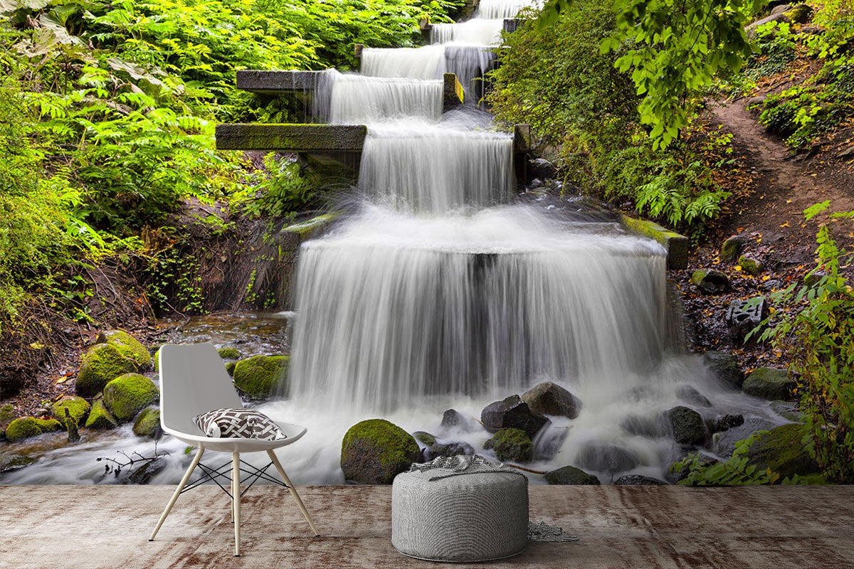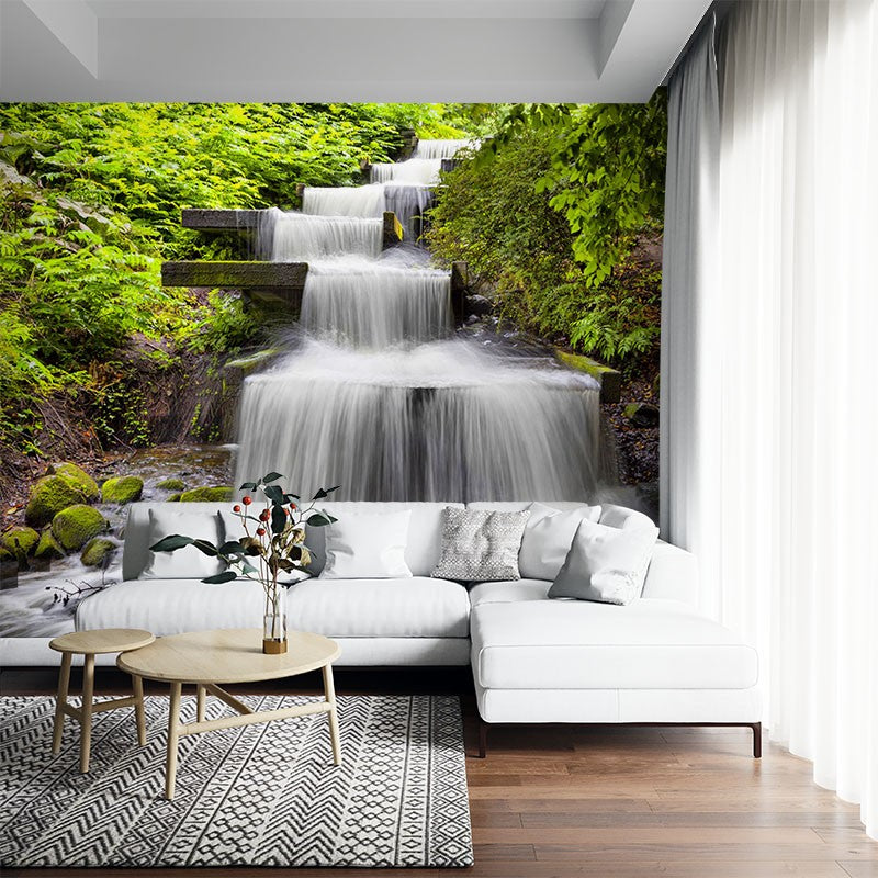 Forest Stream Nature Waterfall Green Wallpaper Mural,Self-Adhesive Peel And Stick 3D Wall Paper,Removable Bedroom Wall Decor