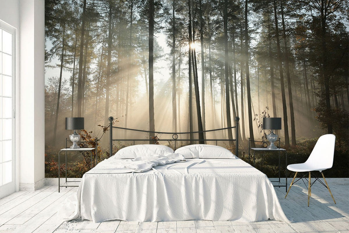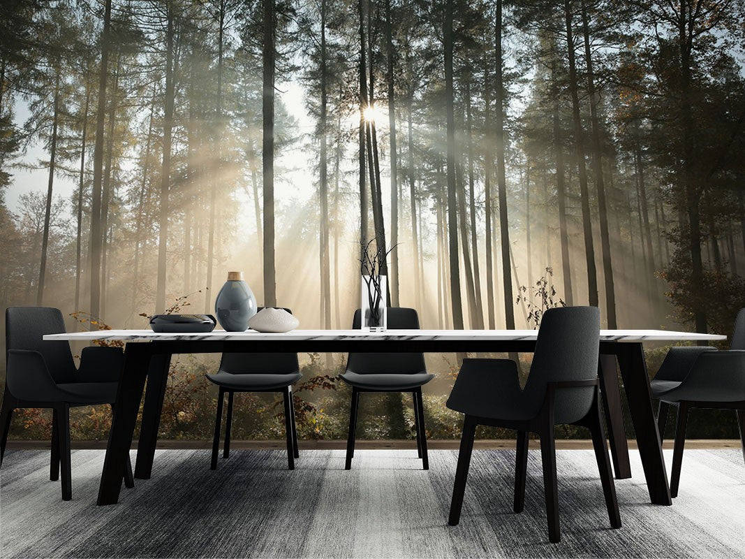 Forest Sunrise Black Wallpaper Mural,Self-Adhesive Peel And Stick 3D Wall Paper,Removable Australian Company Wall Decor