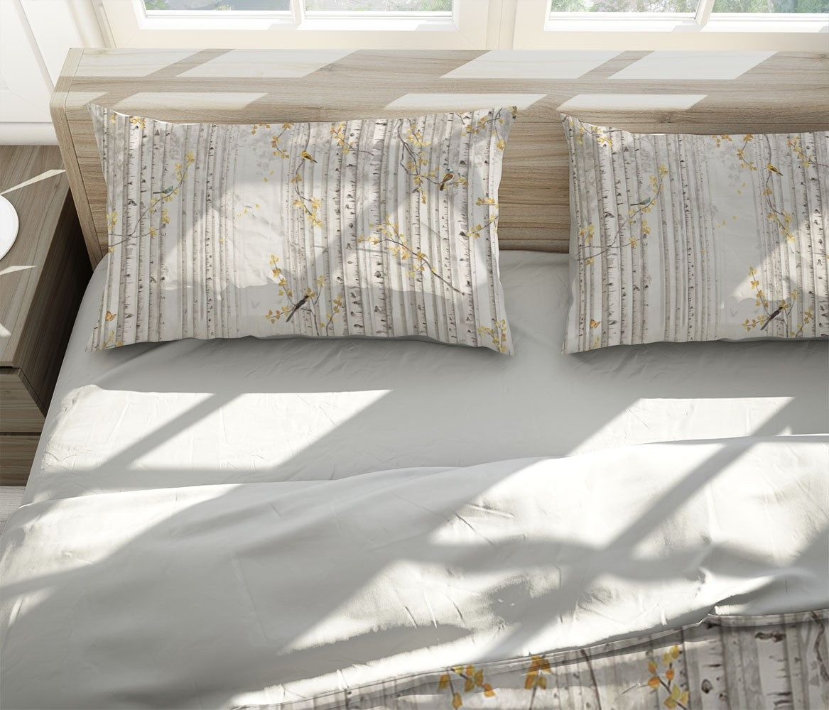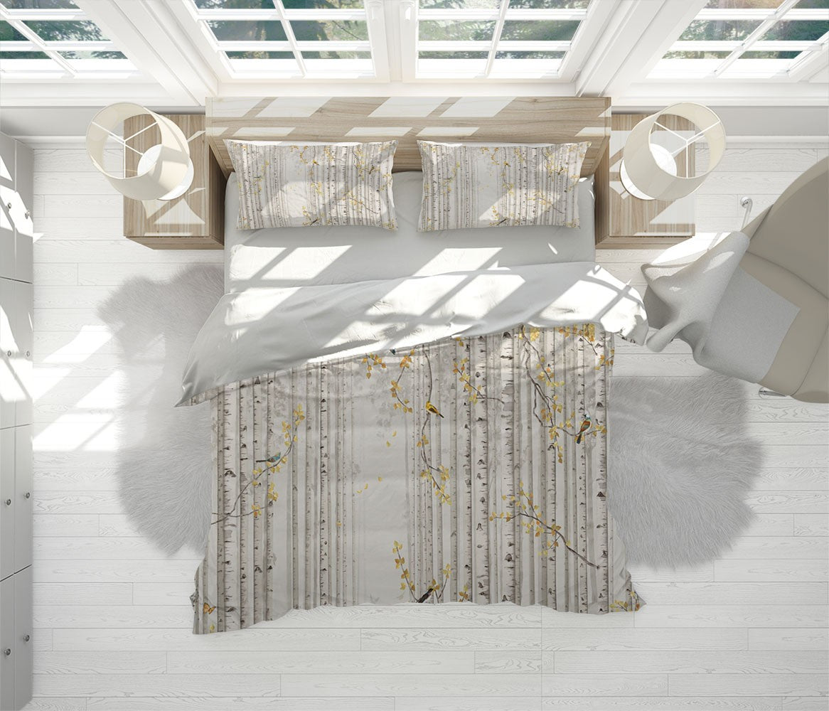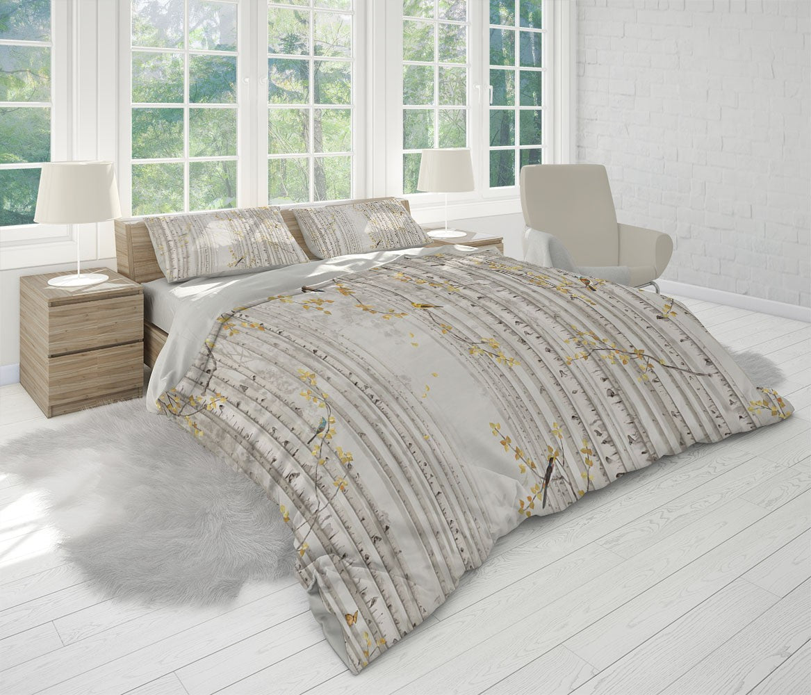 Forest Swallows Gray 3D Duvet Cover Set W Pillow Cover, Single Double Queen King Size, Printed Cotton Quilt Doona Cover 3 Pcs