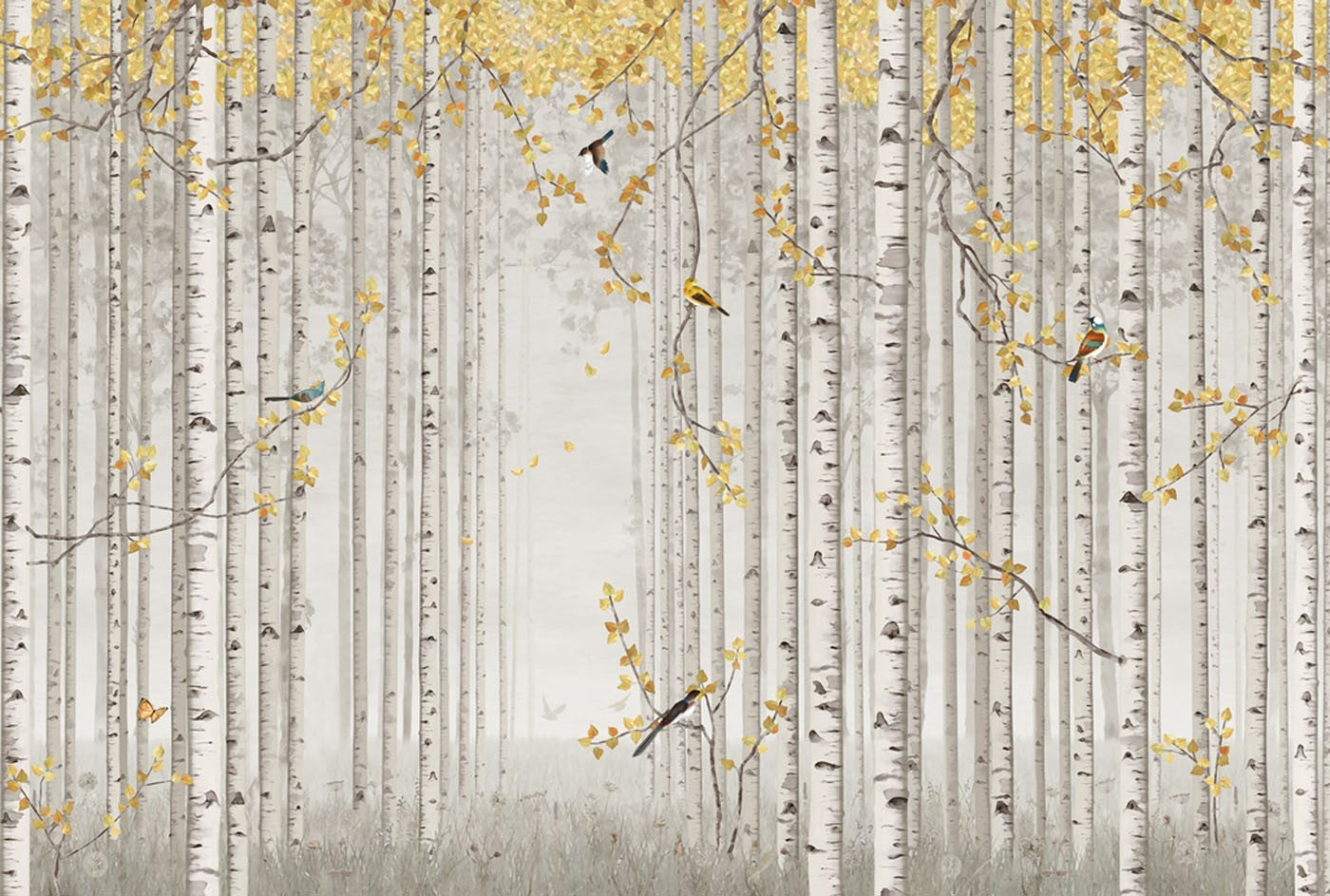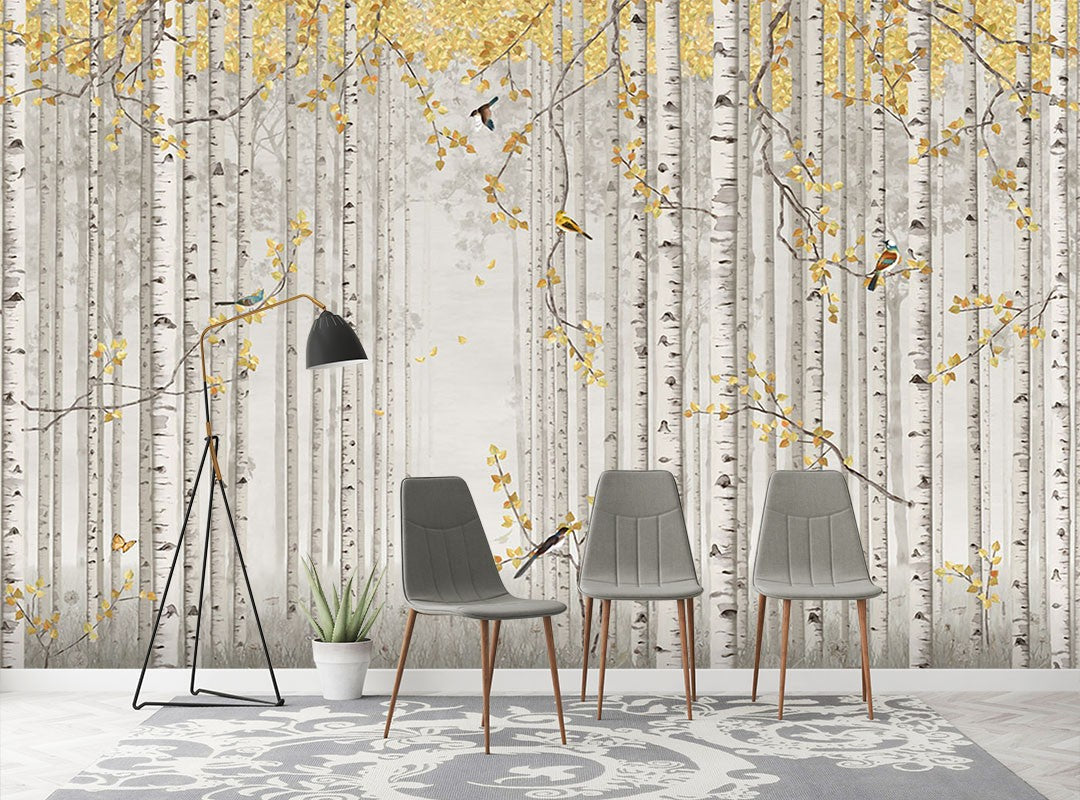 Forest Swallows Gray Wallpaper Mural,Self-Adhesive Peel And Stick 3D Wall Paper,Designer Bedroom Wall Decor