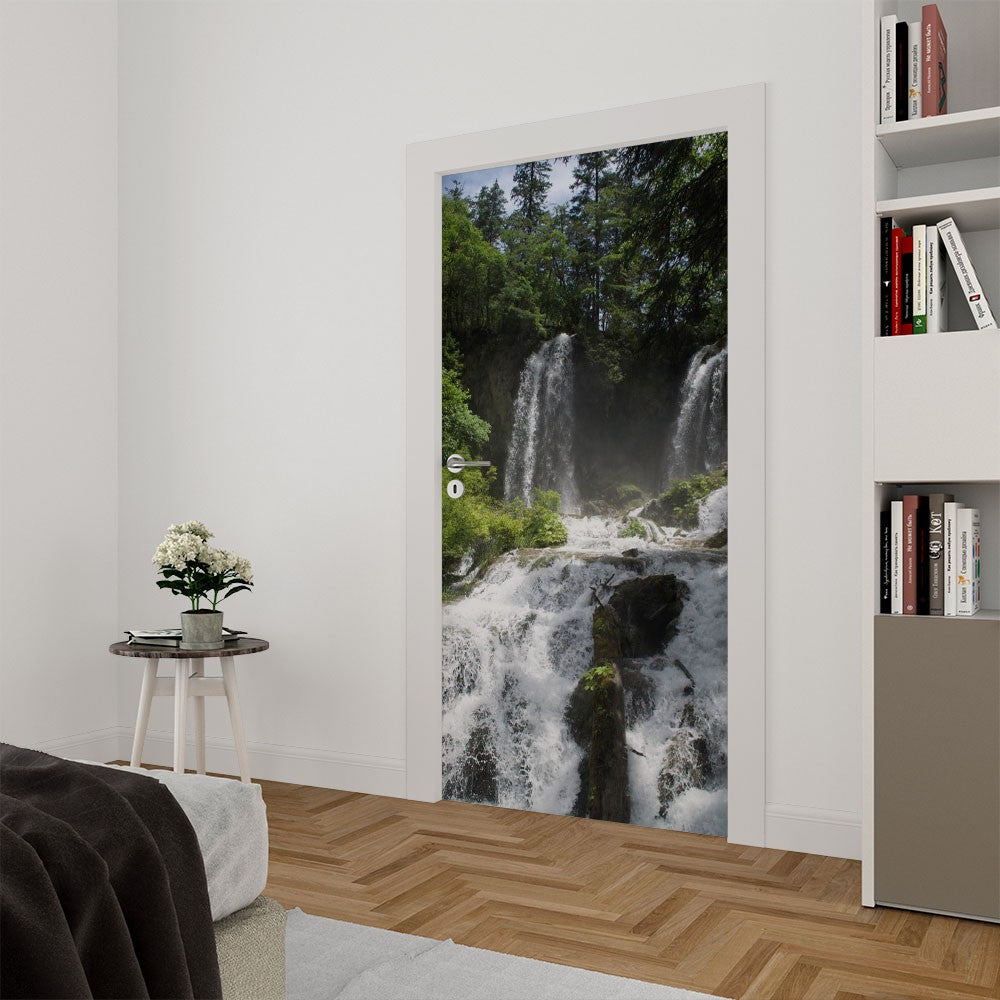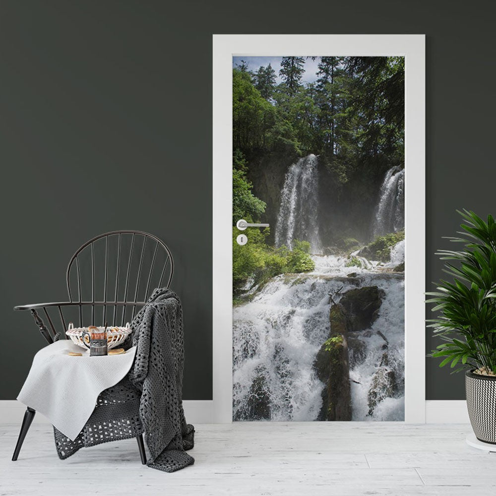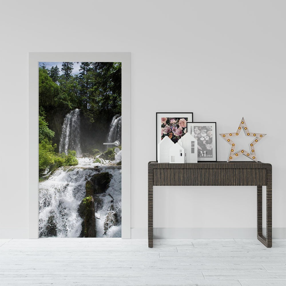 Forest Valley Nature Waterfall Door Wrap, Customized Mural For Door, Door Mural Sticker, Peel And Stick Door Cover, Removable Door Decal