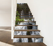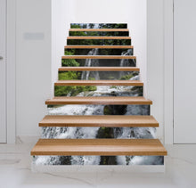 Forest Valley Nature Waterfall Green Stair Riser Decals, Waterproof Removable Staircase Decals, Vinyl Peel And Stick Stairs Decal Stickers