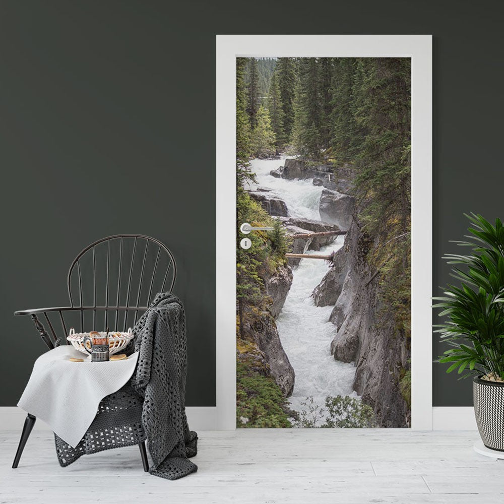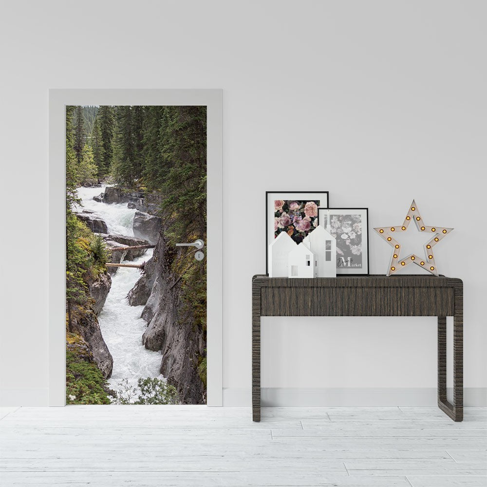 Forest Waterfall Nature Rivers & Lakes Door Wrap, Customized Mural For Door, Door Mural Sticker, Peel And Stick Door Cover, Removable Door Decal