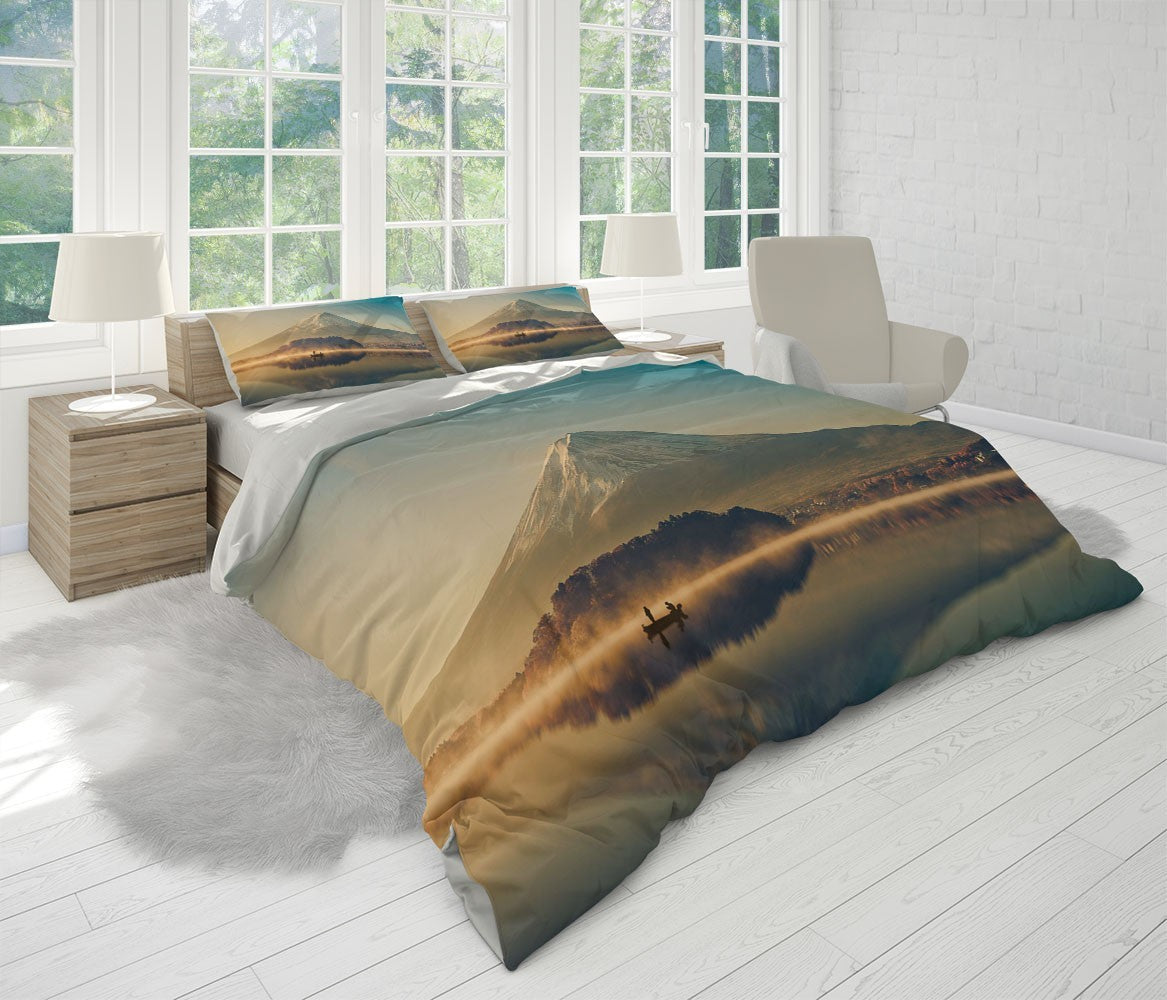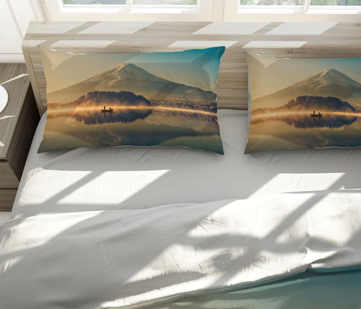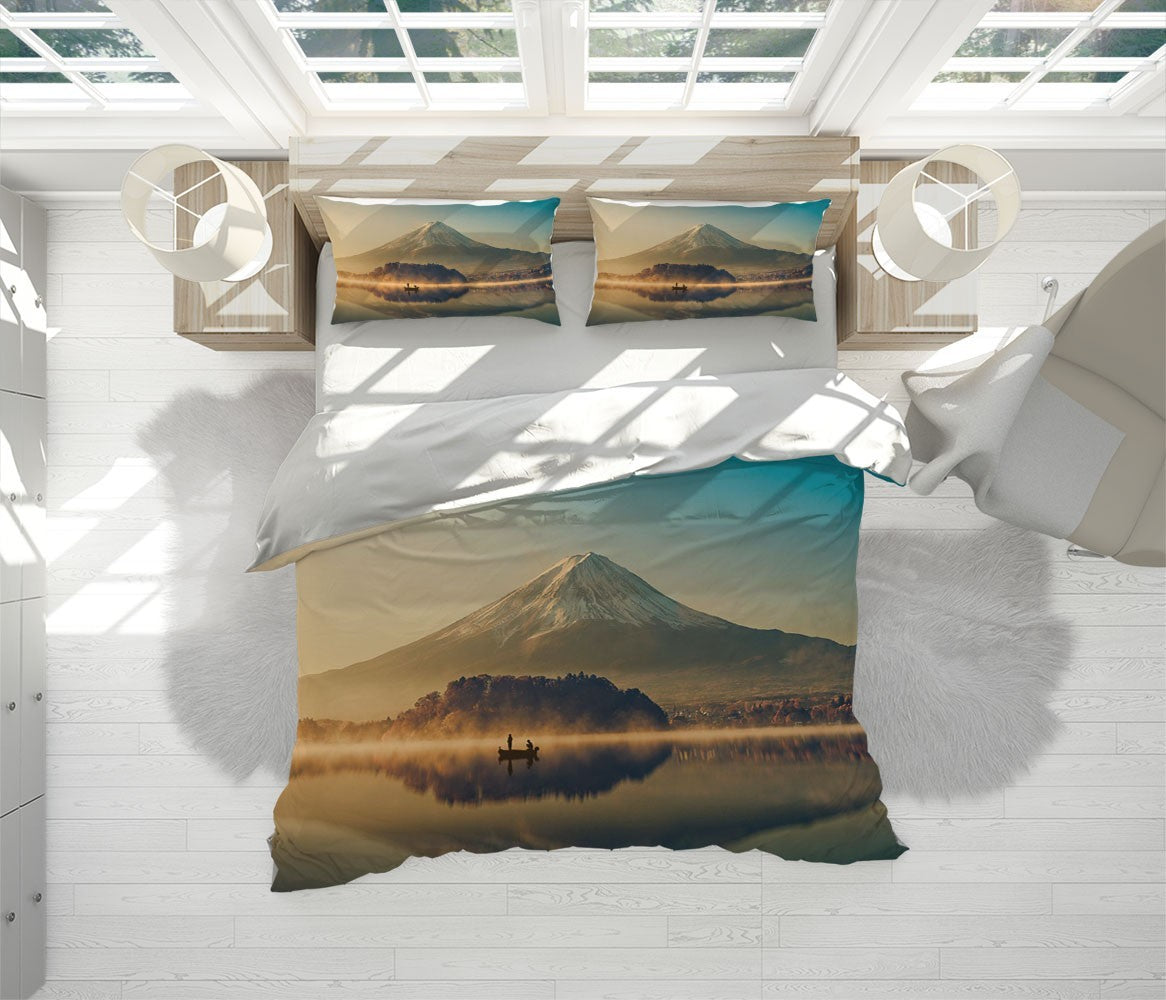 Fuji Mountain Duvet Cover Set W Pillow Cover, Brown Nature Landscape 3D Quilt Cover, Single Double Queen King Size Doona Cover