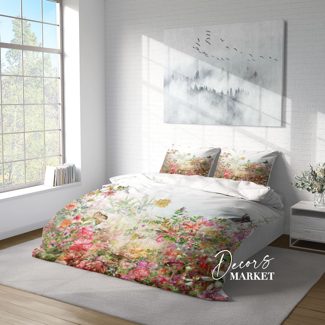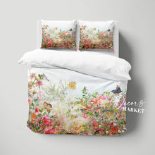 Garden Butterfly Watercolor Duvet Cover Set w Pillowcases, Colorful Floral Flowers 3D Quilt Cover, 3pc Double Queen King Size Doona Cover