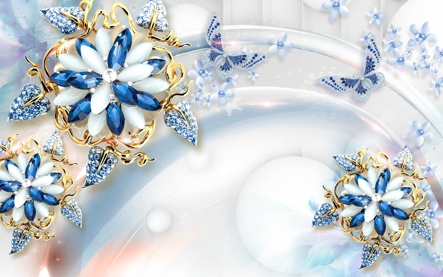 Gemstone Carving Art 3D Blue Wallpaper Mural