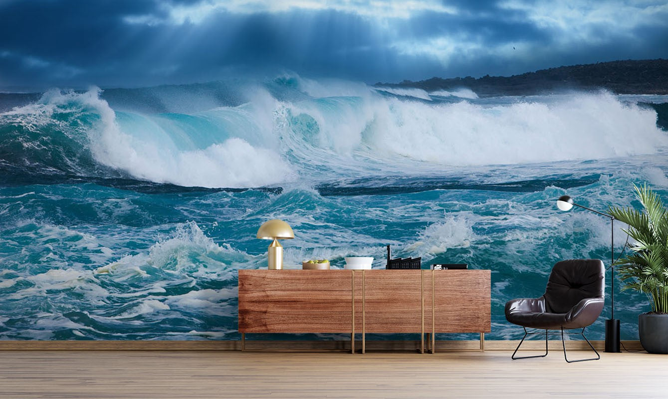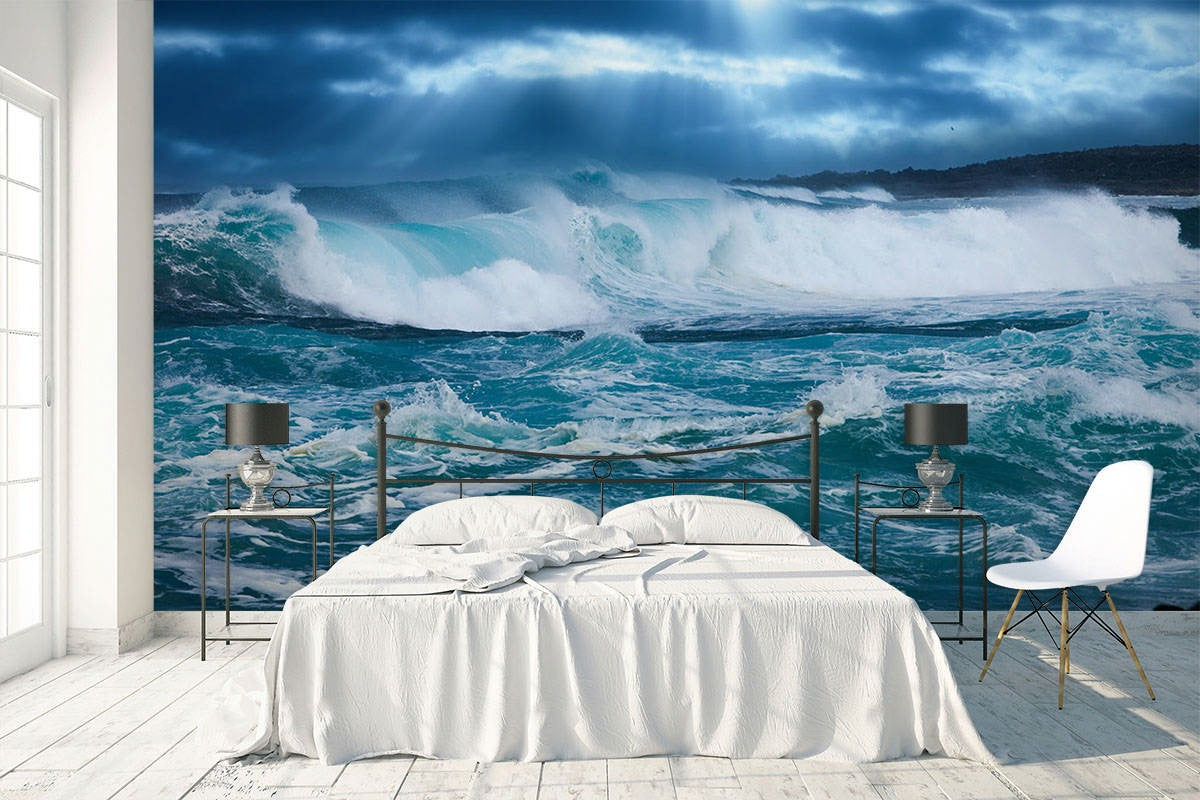 Giant Wave Beach Blue Wallpaper Mural,Self-Adhesive Peel And Stick 3D Wall Art,Bedroom Removable Wall Decor