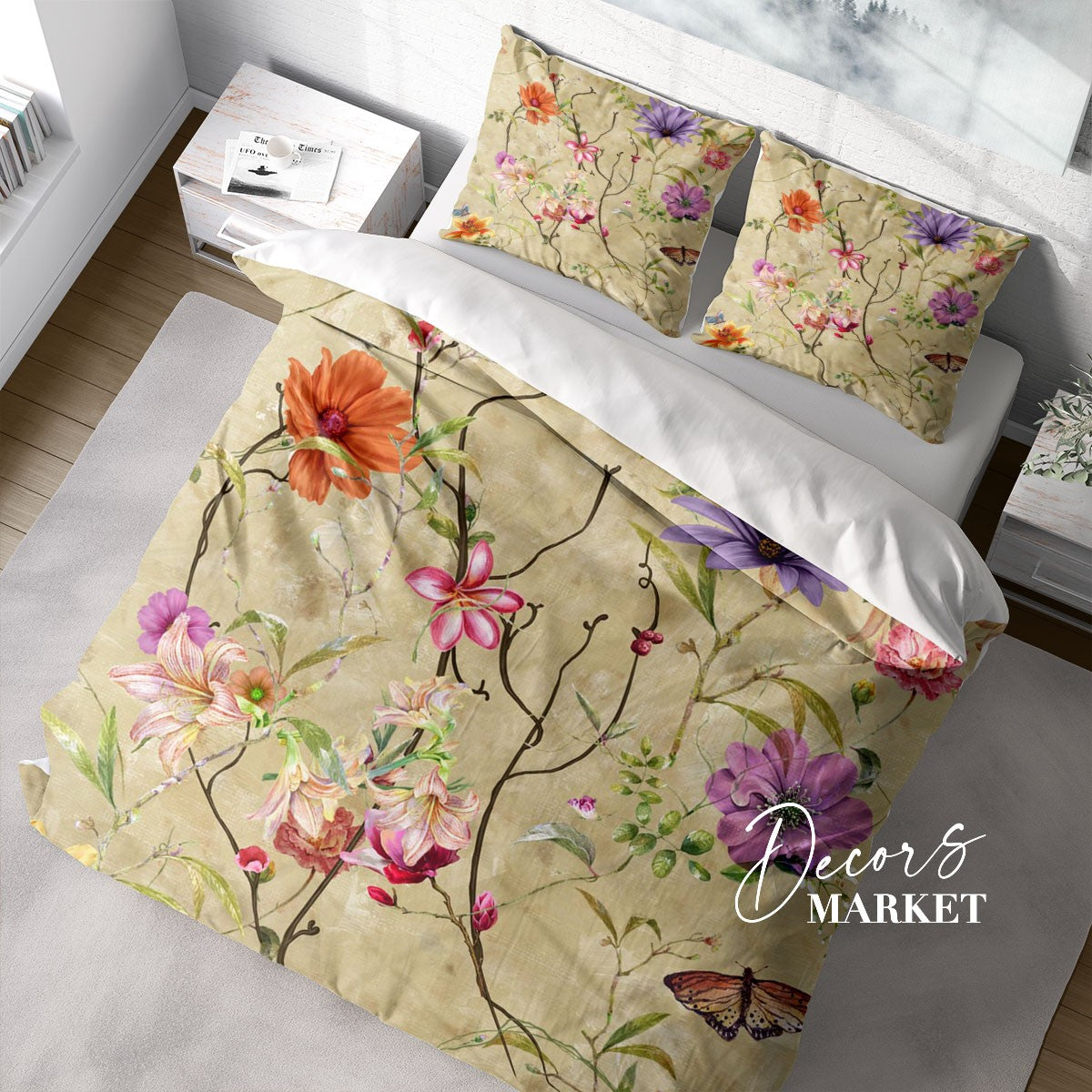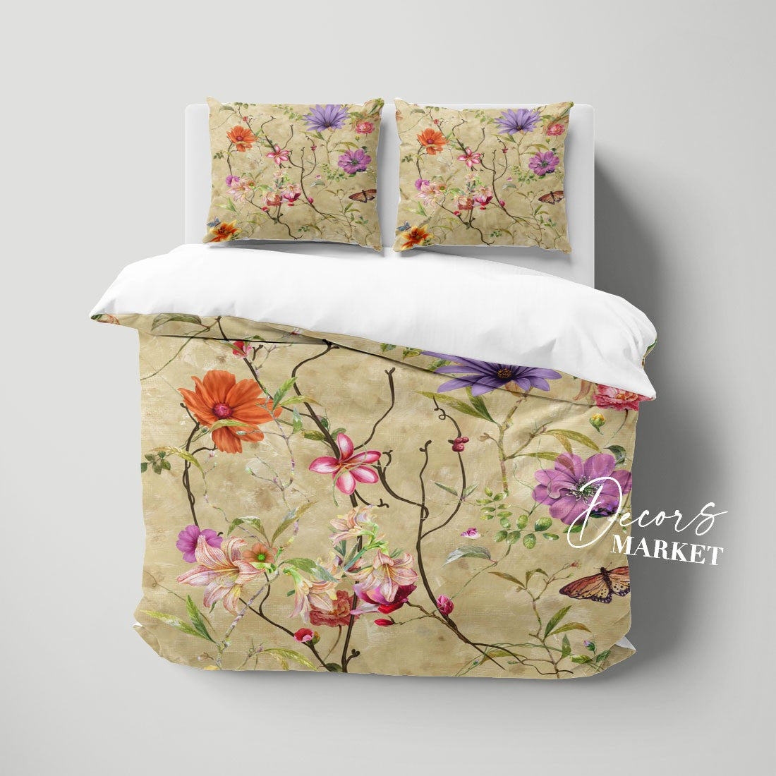 Gilly Flower Leaf Vine Duvet Cover Set w Pillowcases, Yellow Floral Patterns 3D Quilt Cover, 3pc Single Double Queen King Size Doona Cover
