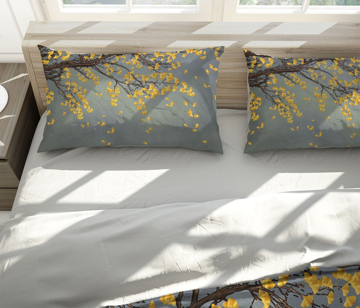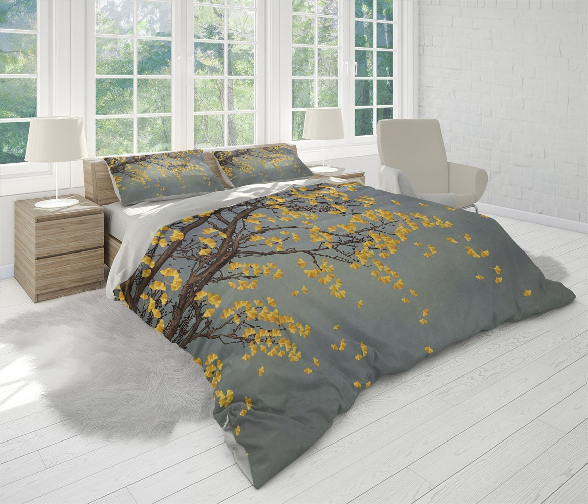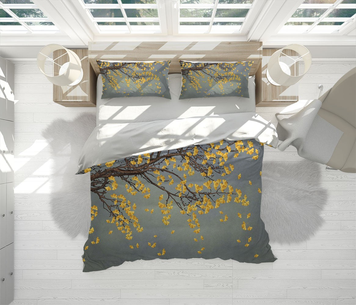 Ginkgo Bloom Duvet Cover Set W Pillow Cover, Green Art Chinoiserie 3D Quilt Cover, Single Double Queen King Size Doona Cover