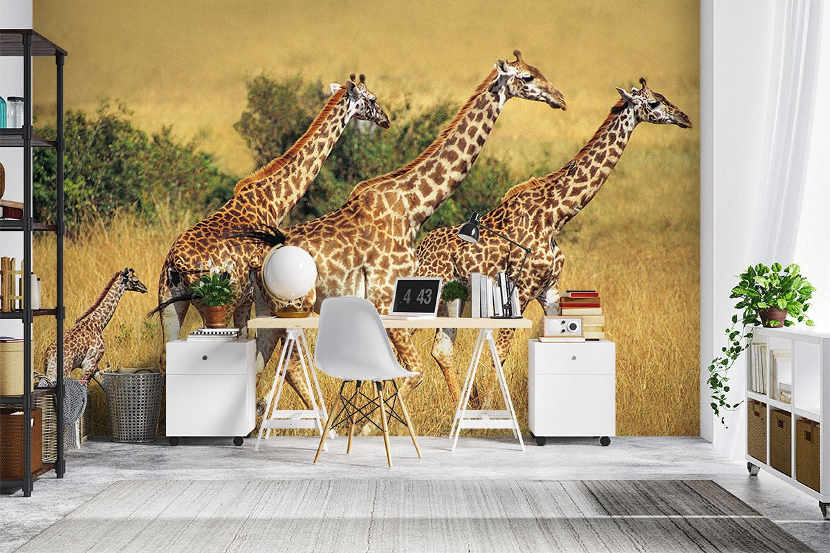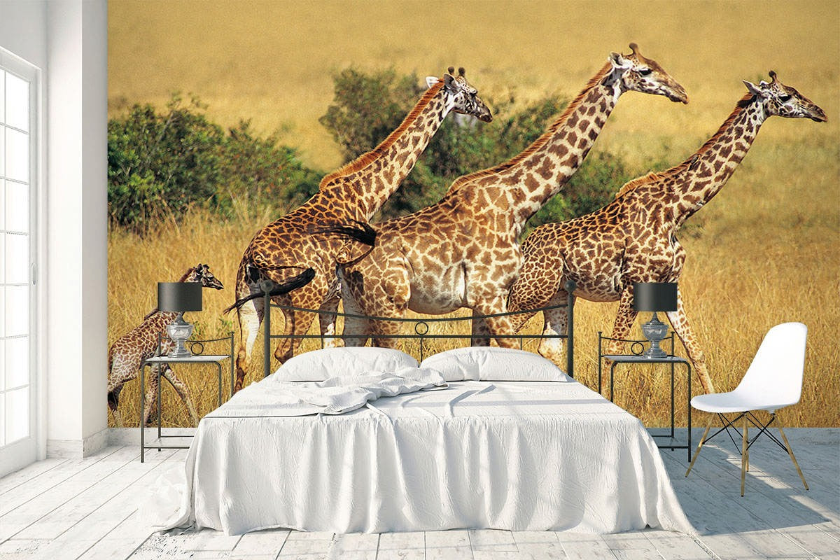 Giraffe Grassland Wild Animals Brown Wallpaper Mural,Self-Adhesive Peel And Stick 3D Wall Decal,Designer Australian Company Wall Decor