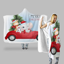 Giraffe Rabbit Elephant Christmas Hat Kids Cartoon Blue Personalized Hooded Throw Blanket Fleece Hoodie Cape