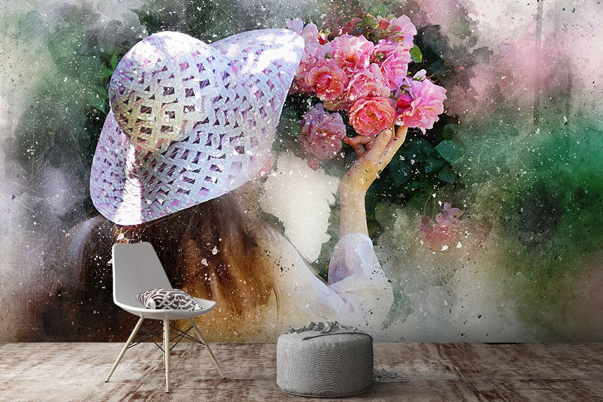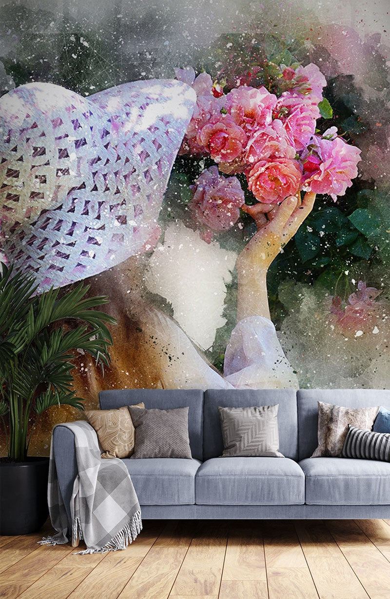 Girl Bouquet Floral Dutch Flowers Bright Wallpaper Mural,Self-Adhesive Peel And Stick 3D Wall Decor,Australian Company Bedroom Wall Decor