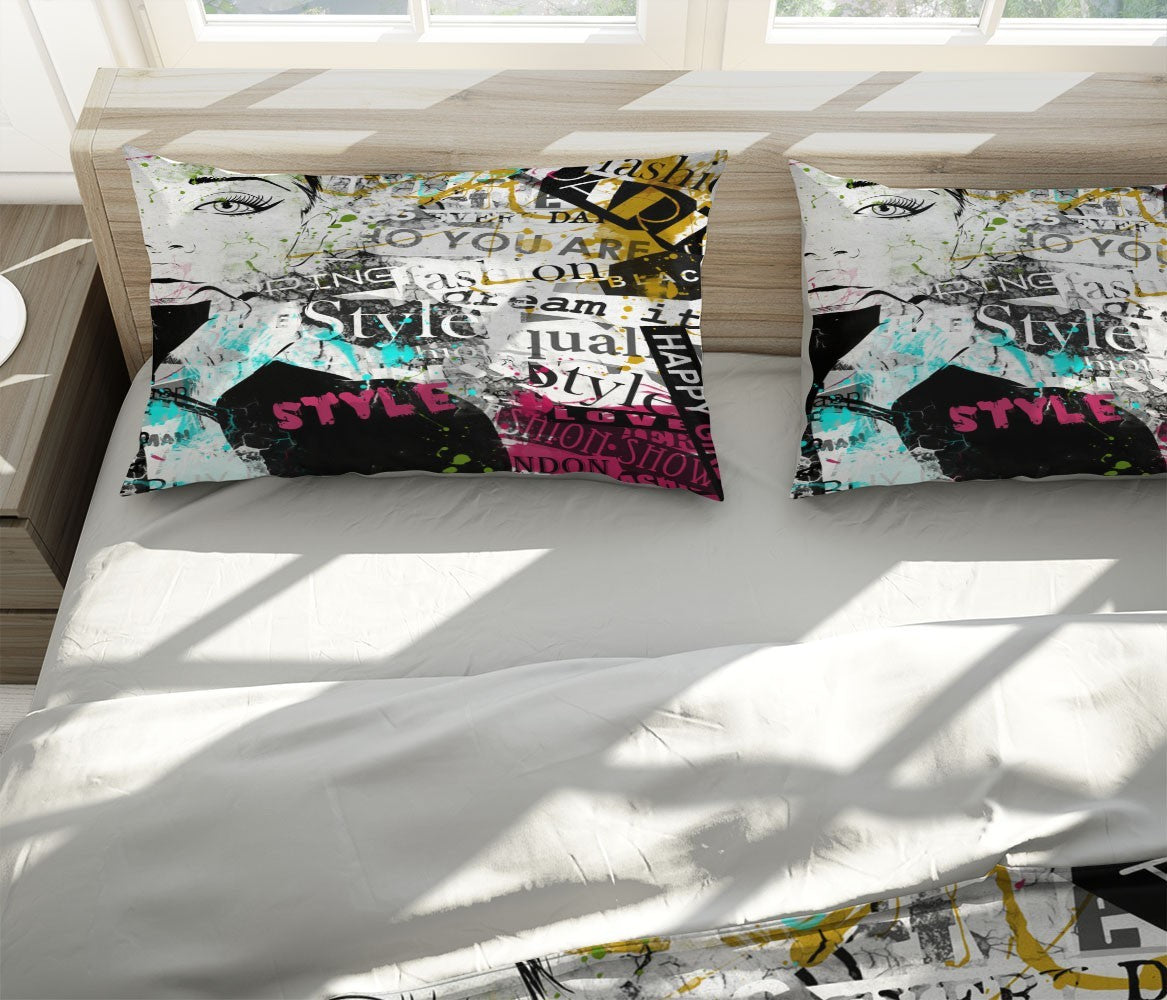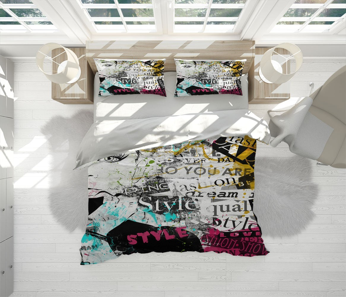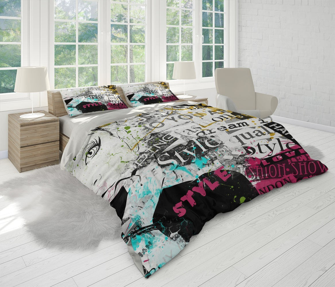Girl Face Duvet Cover Set W Pillow Cover, Multicolour Graffiti Graffiti 3D Quilt Cover, Single Double Queen King Size Doona Cover