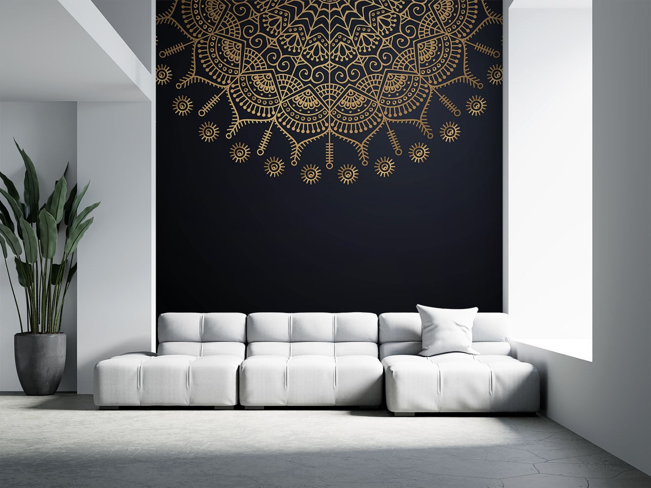 Gold Mandala Texture Patterns Navy Wallpaper Mural