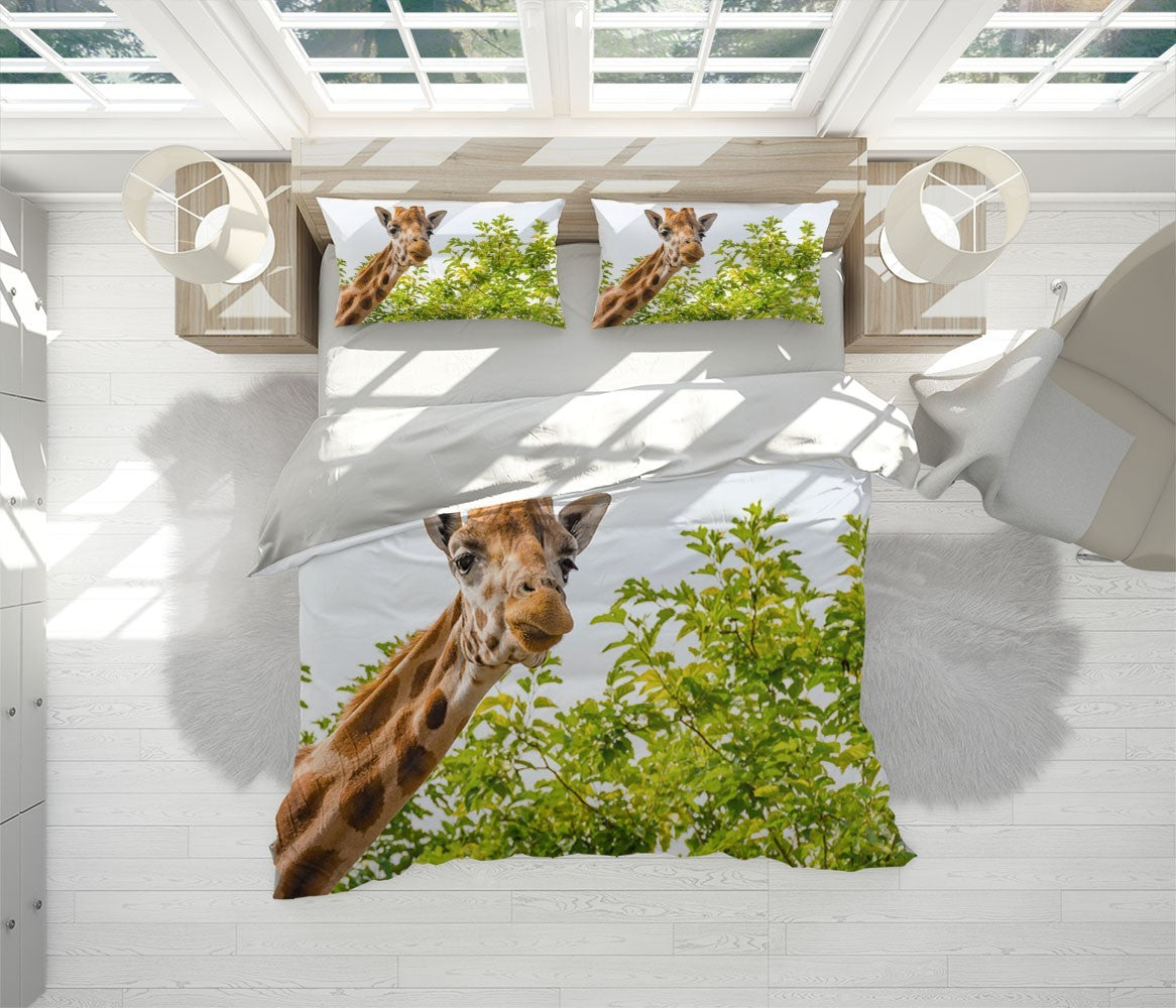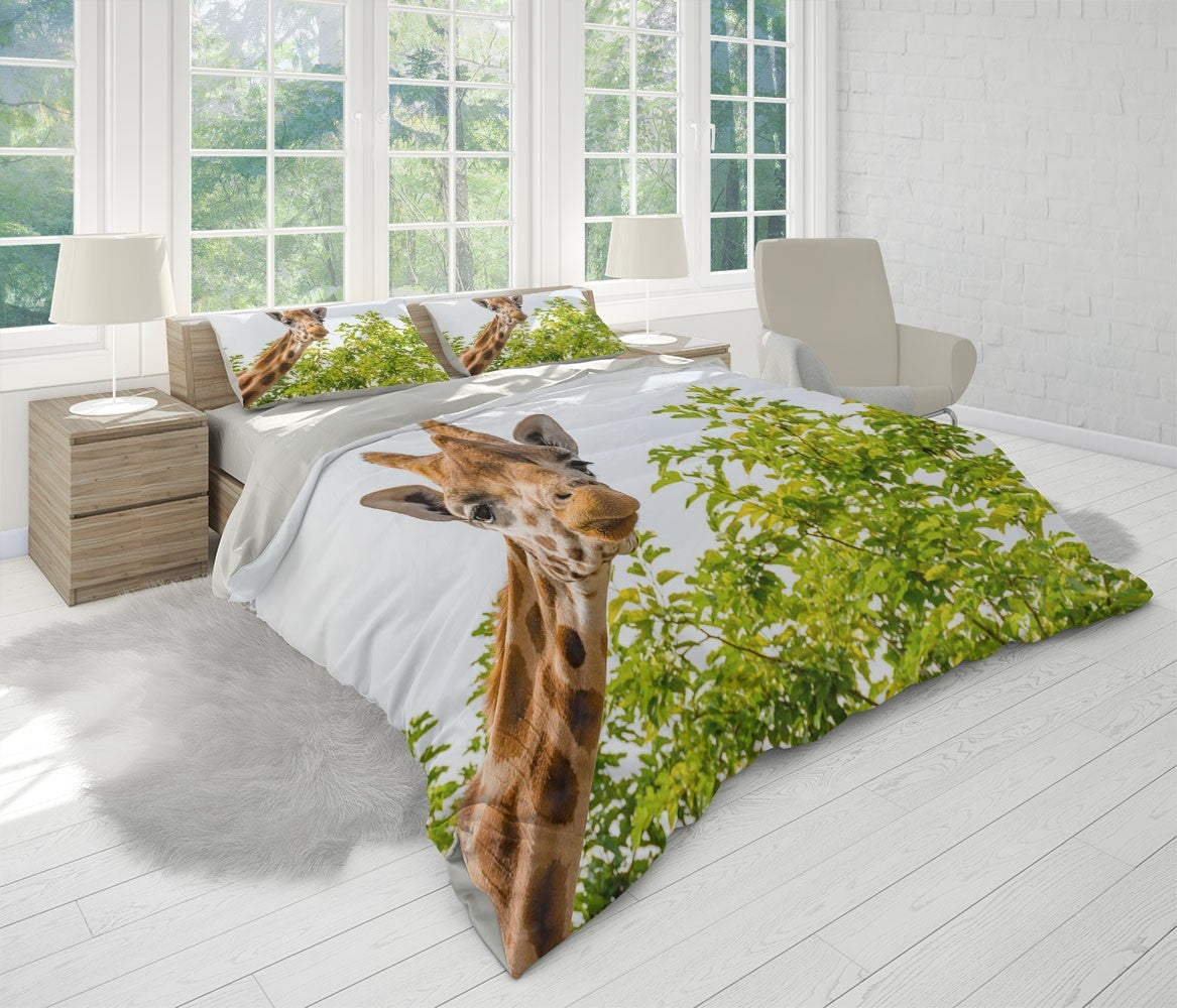 Goofy Girrafe Duvet Cover Set W Pillow Cover, Green Animals Wild Animals 3D Quilt Cover, Single Double Queen King Size Doona Cover