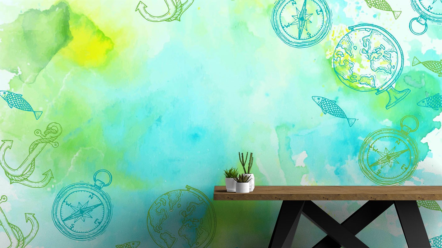 Gradient Navigation Art Watercolor Blue Wallpaper Mural