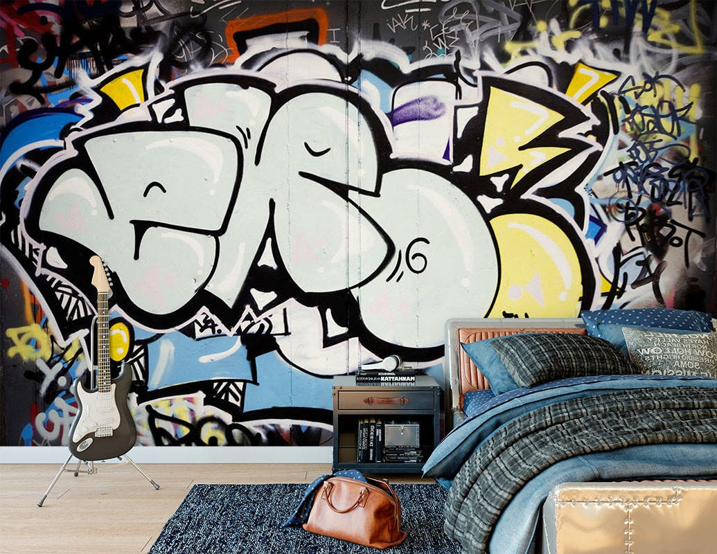 Graffiti Letters Multicolour Wallpaper Mural,Self-Adhesive Peel And Stick 3D Wall Art,Removable Australian Company Wall Decor