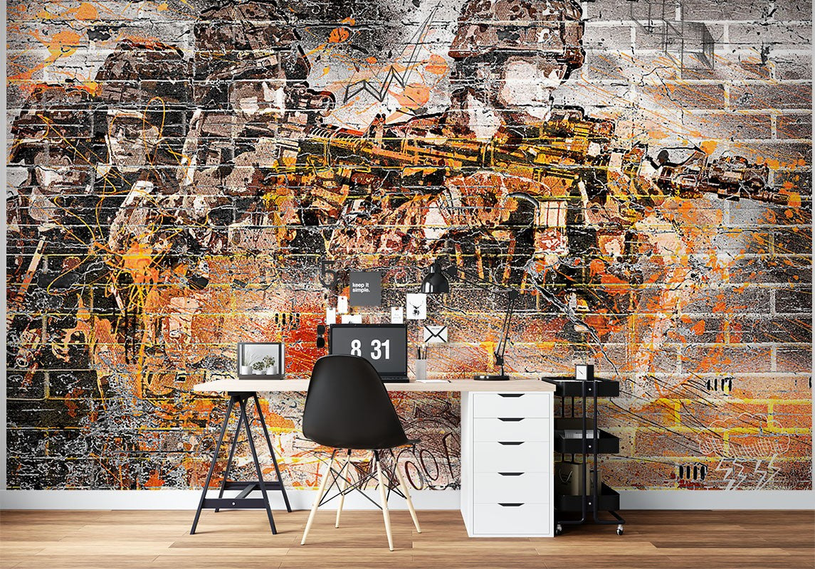 Graffiti Soldier Multicolour Wallpaper Mural,Self-Adhesive Peel And Stick 3D Wall Art,Removable Designer Wall Decor