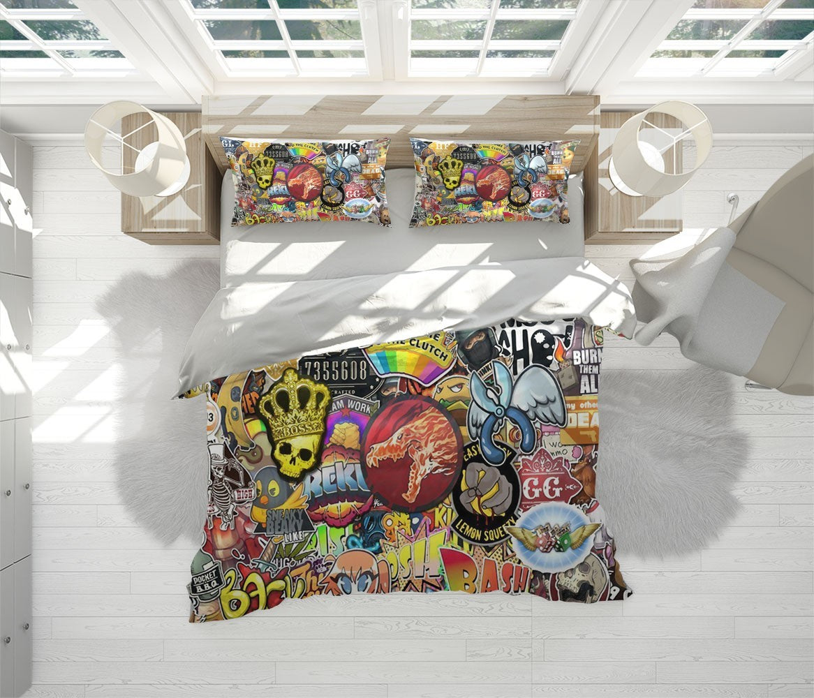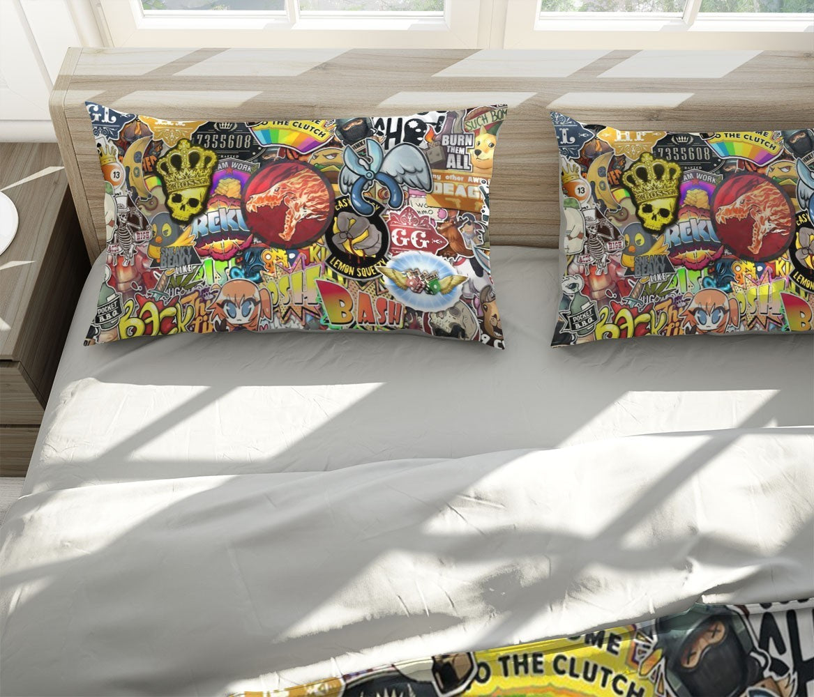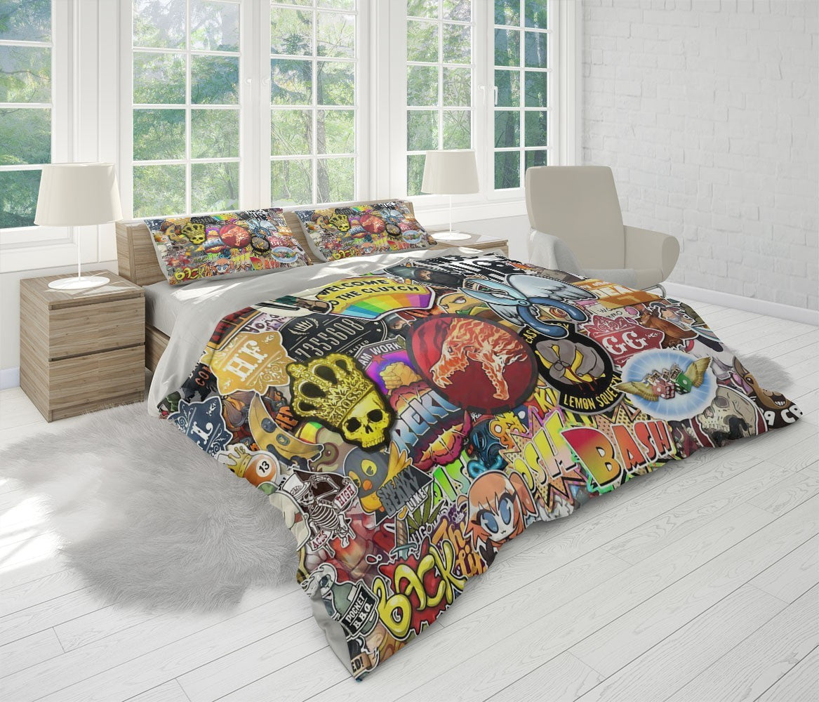 Graffiti Stickers Duvet Cover Set W Pillow Cover, Multicolour Art Pop Art 3D Quilt Cover, Single Double Queen King Size Doona Cover