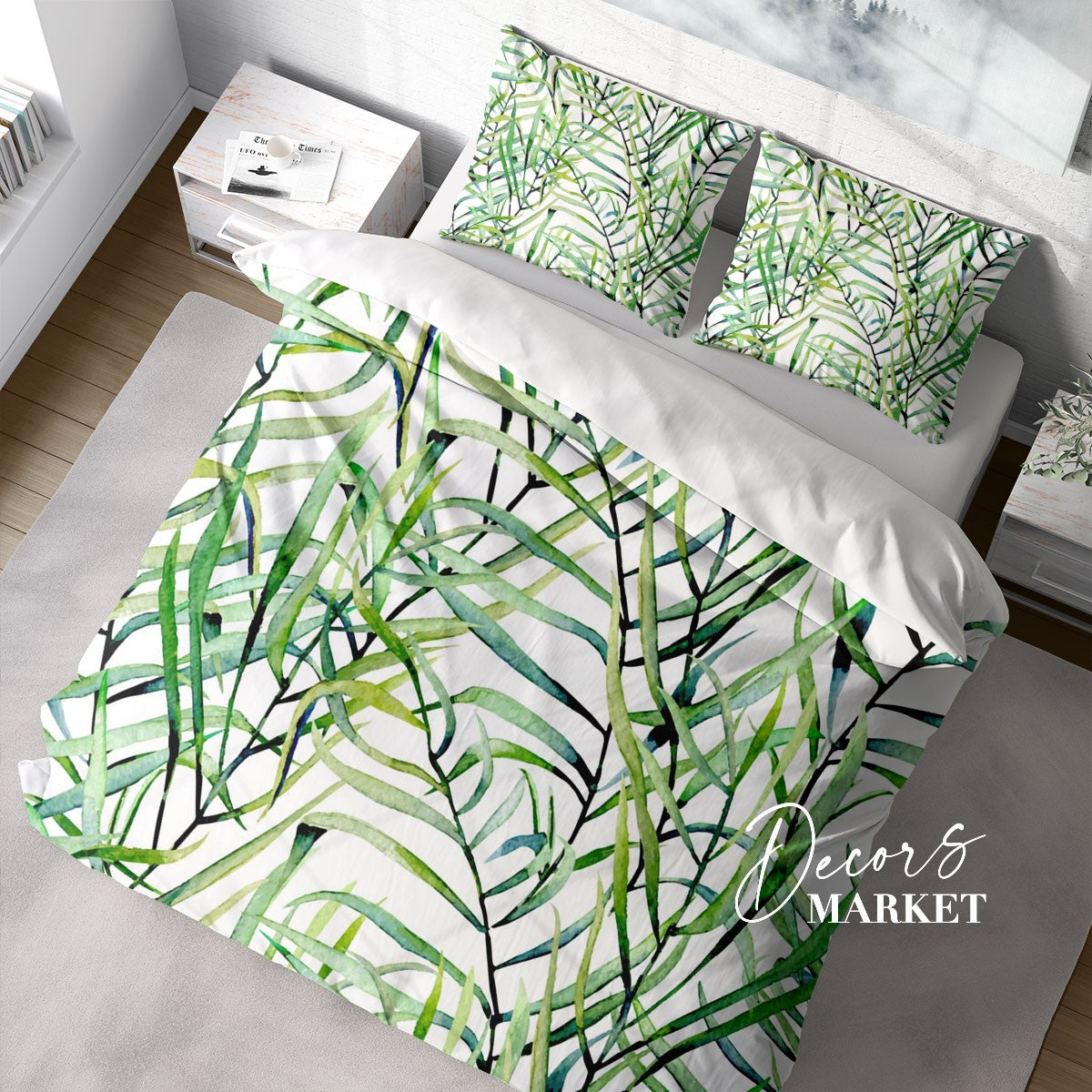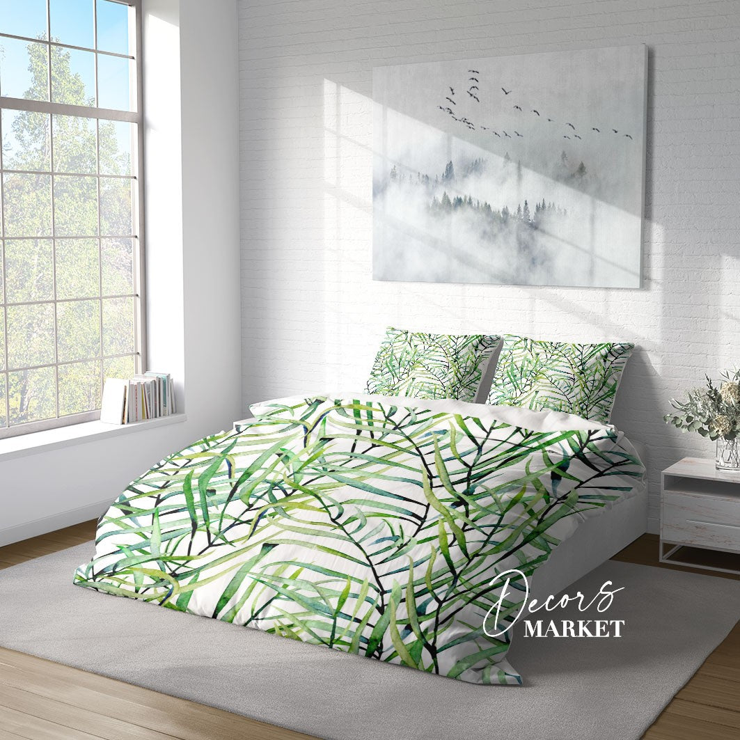 Grass Branches Duvet Cover Set w Pillowcases, Green Floral Leaves 3D Quilt Cover, 3pc Single Double Queen King Size Doona Cover