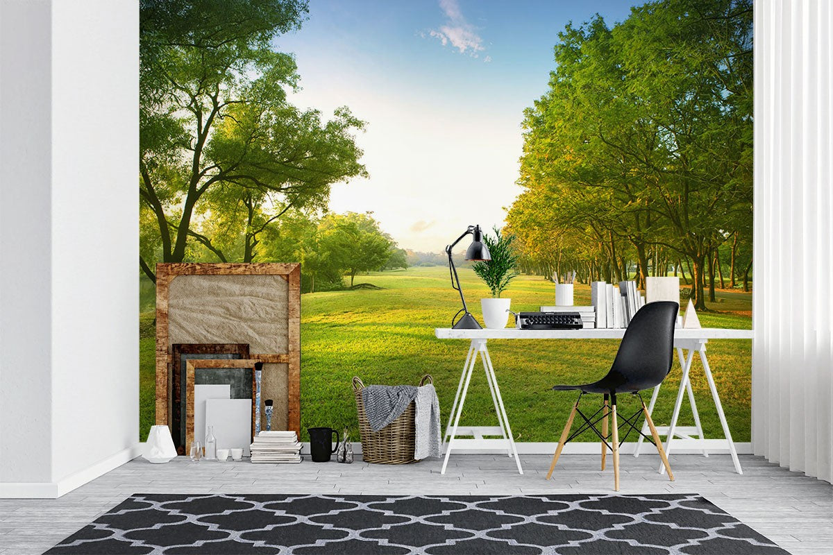 Grassland Woods Nature Grass Green Wallpaper Mural,Self-Adhesive Peel And Stick 3D Wall Art,Designer Removable Wall Decor
