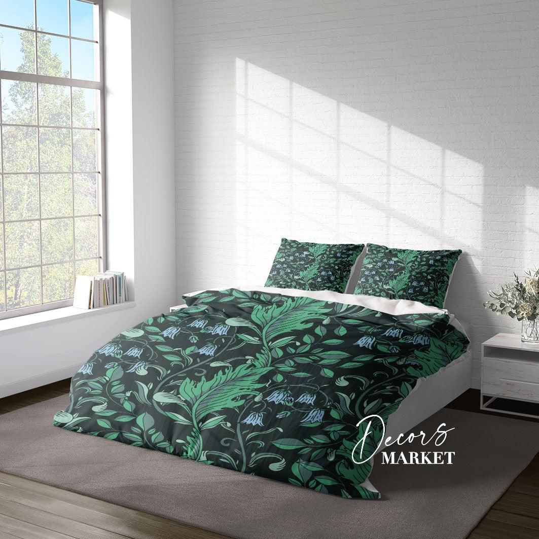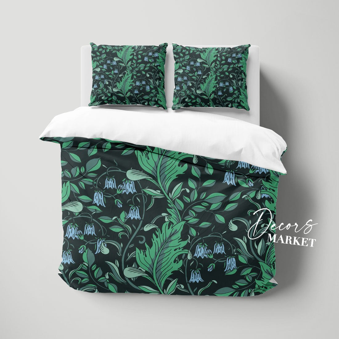 Green Fuchsia Branches Duvet Cover Set w Pillowcases, Green Floral Leaves 3D Quilt Cover, 3pc Single Double Queen King Size Doona Cover