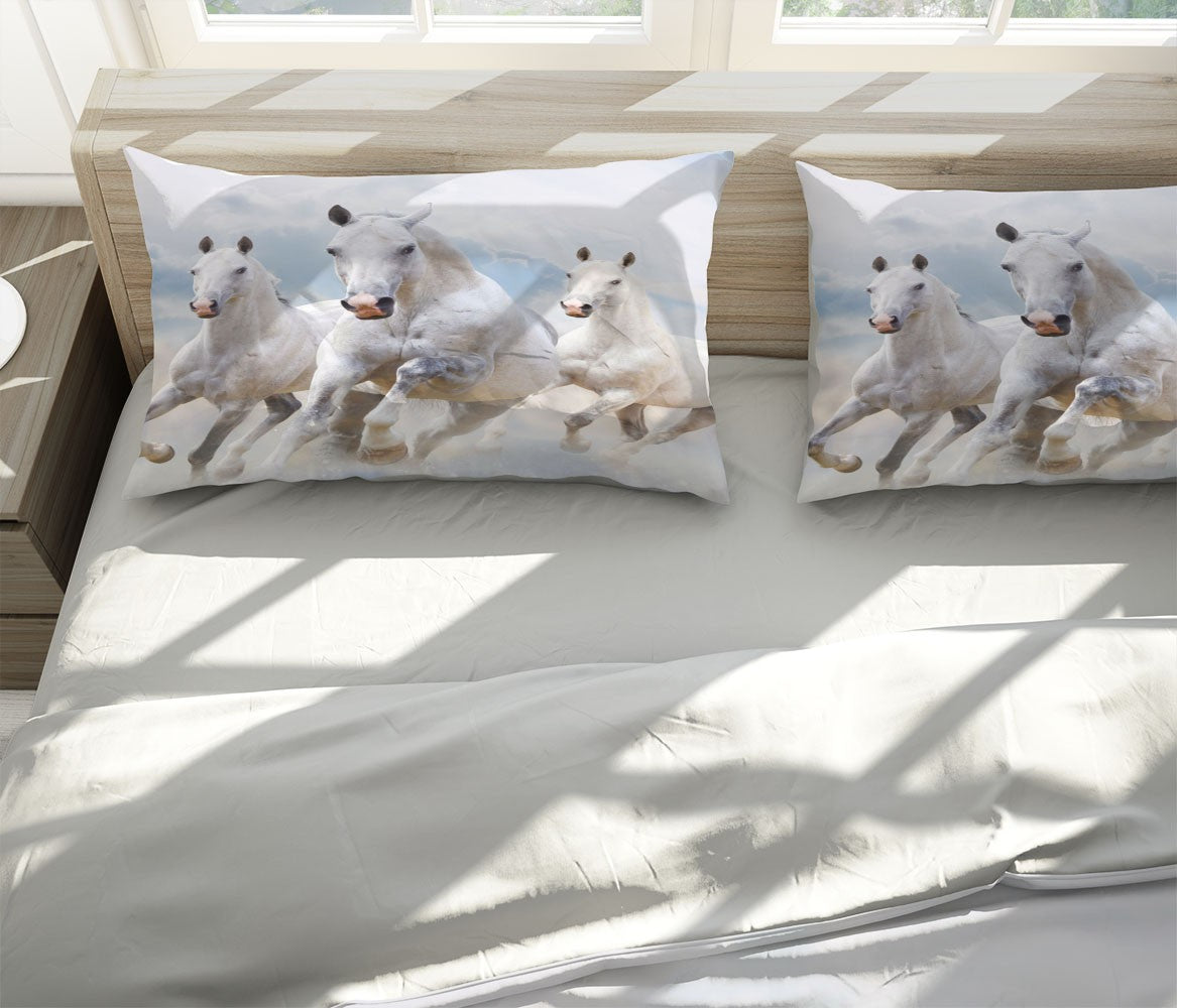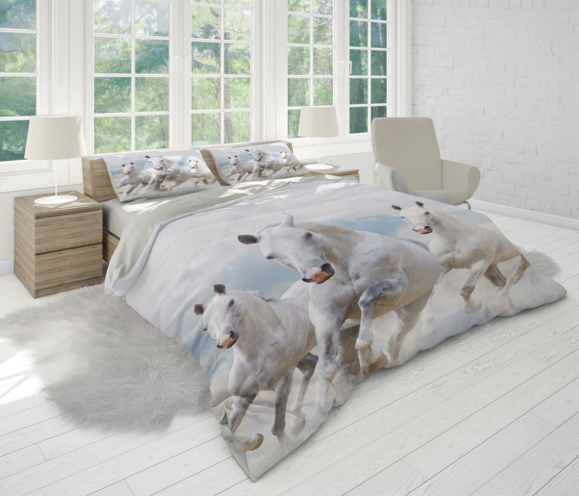 Hakuba Animals Horses White 3D Duvet Cover Set W Pillow Cover, Single Double Queen King Size, Printed Cotton Quilt Doona Cover 3 Pcs