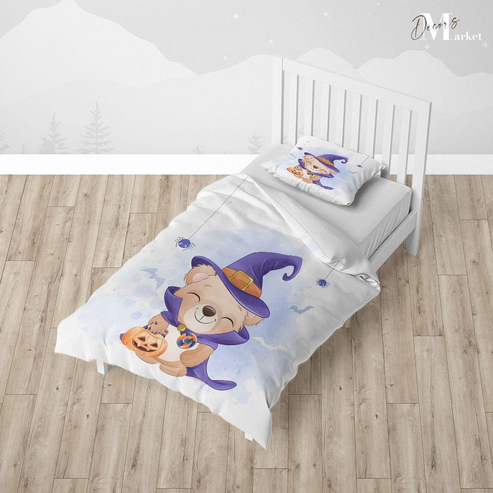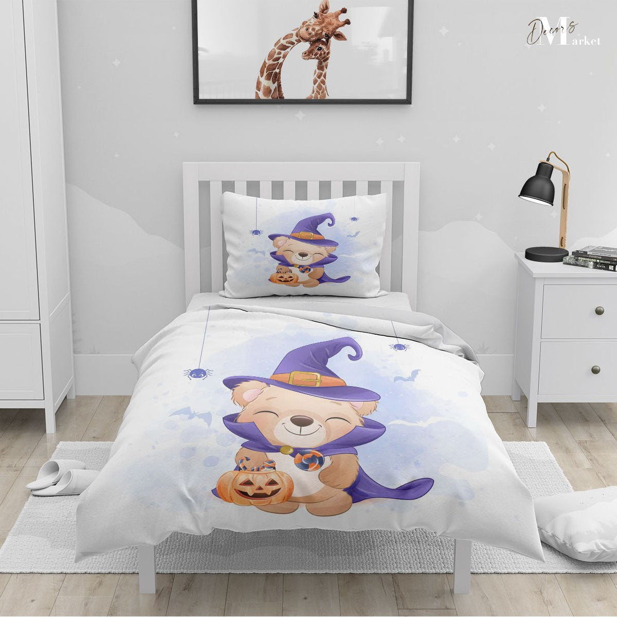 Halloween Cat Smile Duvet Cover Set w Pillow Cover, Purple Kids Cartoon 3D Quilt Cover, Single Double Queen King Size Doona Cover